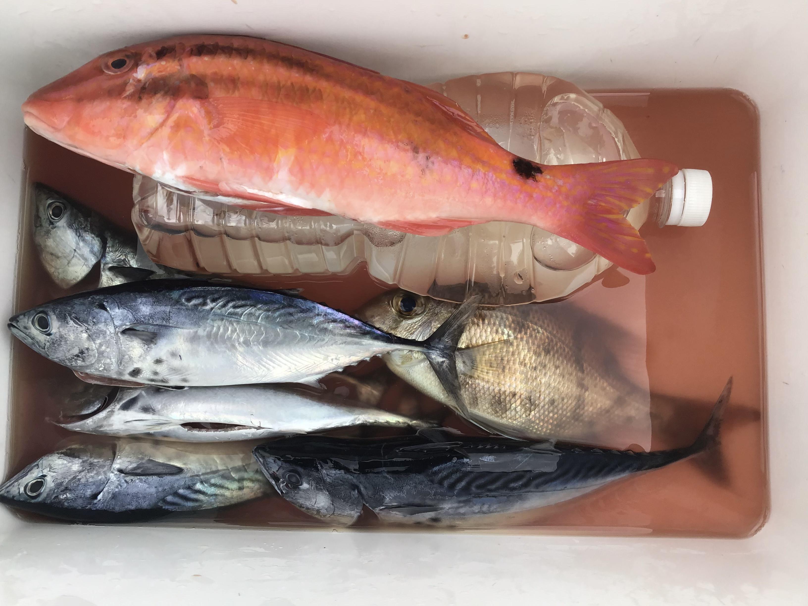 今日はインストラクターお一人と昨日のリベンジに行ってきました。昨日,1時間くらいの間に、3人でジグ15個を食いちぎられたポイントに直行し、釣り開始。私はベイトの下にハタ類がいるのではと思い、タイラバスタート。1投目から、ヤイトらしき魚がヒット。ベイトの反応も出ており、いい感じと思って巻き上げていました。そろそろ魚体が見えるかなと思った瞬間、突然横から1メートル程のエメラルドグリーンの魚体がすっ飛んできたかと思うと、そのまま一気に30メートル程走って、お決まりの「ジャーンプ!」シイラです。針バレしないようテンションをかけていたのですが、ジャンプの後に、残念ながら手応えが消えてしまいました。タイラバは付いていて、巻き上げて仕掛けを確認すると、針がほぼ一直線に近い状態に伸ばされていました。青物のヤル気スイッチが入っているのではと期待しましたが、昨日ほどの激バイトはなく、ポイントを離脱しました。その後転々とベイト反応を探しながら釣り続けましたが、大物とのやりとりは無し。ワイヤー仕掛けで挑んだものの、一瞬のバイトで、その上のリーダーやPEからやられたりして、今日のロストは、買ってきたばかりの高級ルアー2個、タイラバ1個という結果でした。刺身用のヤイトの子(小振りでもモチモチとしていて相当美味い!)を数本ずつゲットし、型の良いオジサン、干物用のメイチダイを追加して11時前には帰港しました。午後から海が荒れる予報が出ていたので、実釣3時間弱の釣行となりましたが、あらためてリベンジを決意したところです。 ![]() |