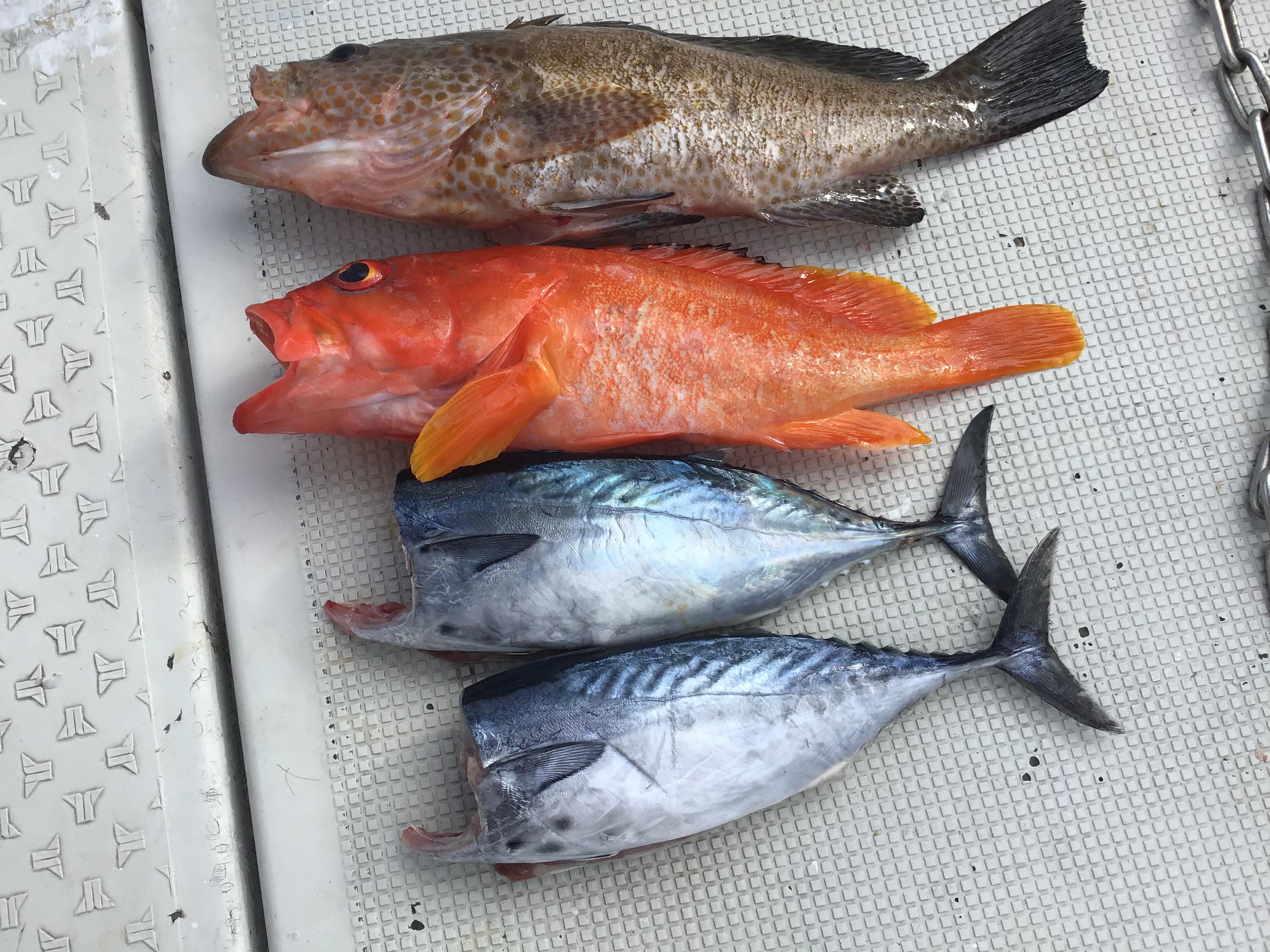 秋になると「青北」と言って強い北風が吹き、海が荒れることが多くなります。また、台風の影響で船を出せないことも多く、なかなか船釣りができない季節です。そんな中、お一人様貸切状態で久々に出船してきました。台風のうねりは強い西風で取れていたものの、沖に出るほど、西風による風波があり、釣りづらい状況でした。そんな中、沖の沖では、いつも通りヤイトの子がコンスタントに釣れる状況。ベイトの反応もまずまずでした。そこでアカハタの40弱が一枚。その後、風波が強かったので、南のポイントへ移動。海が荒れる前に、オオモンハタやアカハタの型のいいのがコンスタントに釣れていたポイントです。ここで予定通り、オオモンハタの40弱を追加。しかし、ベイトの反応も薄く、ここで終了となりました。この南のポイントに移った頃に西風が弱まり、ついにはベタ凪になりました。波は取れましたが、残念ながら潮が動いておらず、今後に期待です。ヤイトは半分以上リリースをされていましたが、2匹だけお持ち帰りになりました。私もちょっと竿を出してヤイトの子とひと回り大きいヤイトを持ち帰りました。 ![]() |