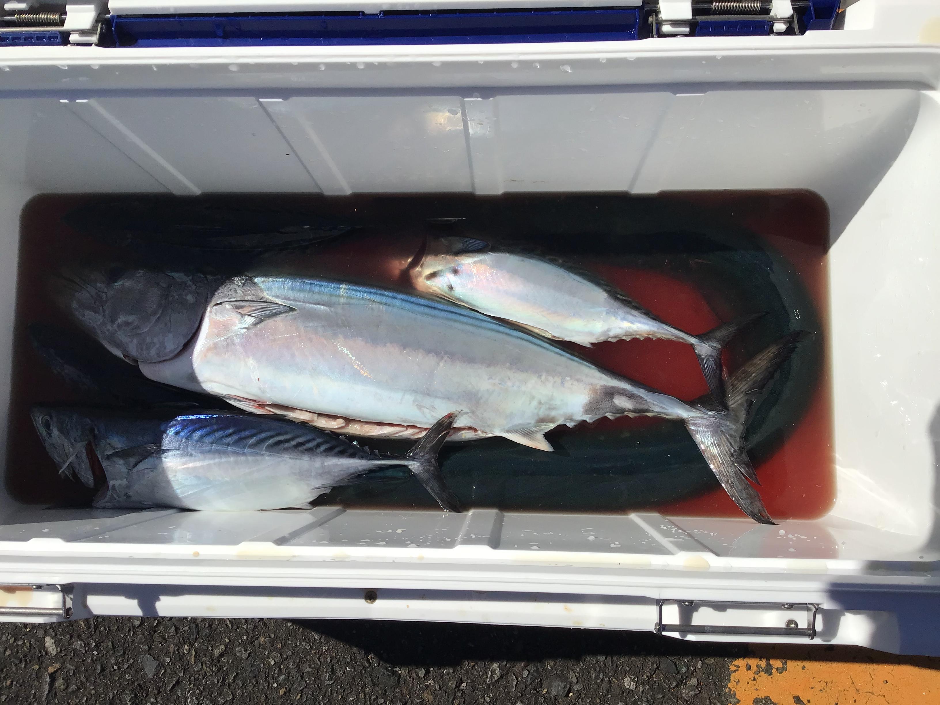 今日は午前ハーフ、3名様の釣行でした。北西の風波を避けるため、前半は近場での釣りになりました。ベイト反応もボチボチでしたが、ヤイトのボイルが見られ、シューティングゲームを楽しみました。思ったほど数が出ませんでしたが、数匹をゲット。その後、沖の瀬に行くと、ワキグレが数千匹?数万匹?湧いていて、なんとなく魚の活性を感じます。その周辺にジグをキャストすると早速ヒット。かなりいい引きでしたが1メートル程のダツでした。さらにダツを追加し、沖へ移動。昨日はベイトの激アツ反応がかなり見られたものの、今日は思ったほど反応がありませんでした。風も止まり潮も全く動いておらず、かなり厳しい状況でしたが、粘り強くジャークを繰り返していたお客様に良い当たり。上がってきたのは50センチほどの美味そうなハガツオでした。その後沖の瀬に戻りましたが、バイトはあるもののヒットせず。フックがなくなっていたり、ジグに噛み跡がたくさんついていたりと、生体反応はありましたが釣果にはつながりませんでした。ダツのほかにも70センチ程のサワラもジャンプしていたので、正体はそのあたりだろうと思います。帰港途中にヤイトのボイルを見つけ、数匹追加して終了となりました。釣り日和になったのですが、もうちょっと釣果があるとよかったかな⁉︎ ![]() ![]() |