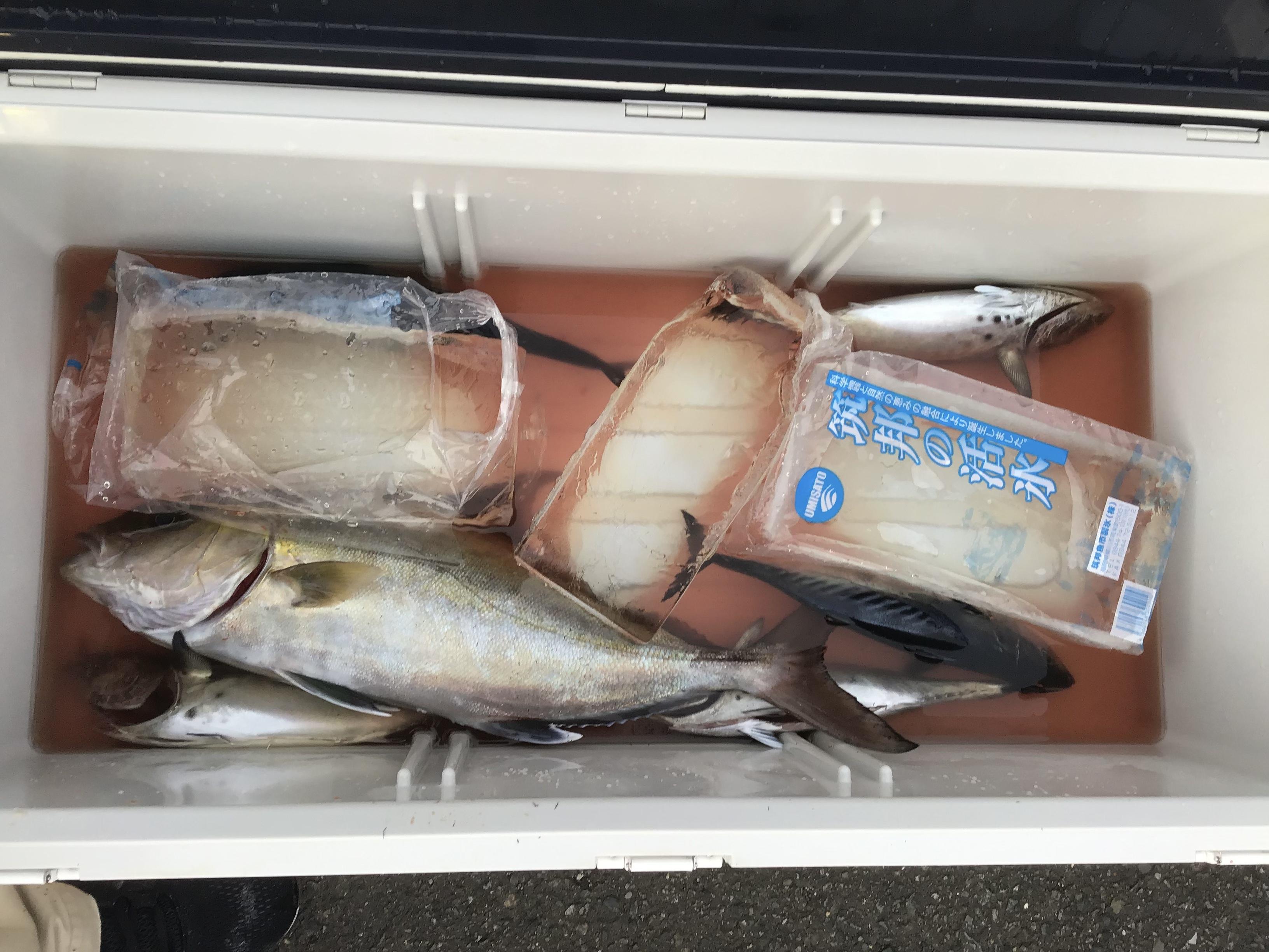 昨日は3名様の釣行でした。朝のうち風波があったので、手前から順に攻めますが、バイトなし。9時くらいから沖の沖に出ましたが、それまでアカハタ、オジサンのみ。ちょいと移動すると、オジサン連発の他、次第に大物の当たりが出始め、タイラバが青物に引きちぎられていったり、底へ底へと突っ込む大物をようやく船の下まで寄せた後、突然の横走りでラインブレイクなど。しかしながら、しばらくして再度大物の当たり。今度はうまく引きづり上げると、60センチのカンパチでした。午後2時くらいからヤイトガツオや鯖のナブラが出始めたので、早速、ナブラ撃ちのシューティングゲームに突入しました。釣果も上がり、充実した疲労感を味わいながらの終了となりました。 ![]() ![]() ![]() |