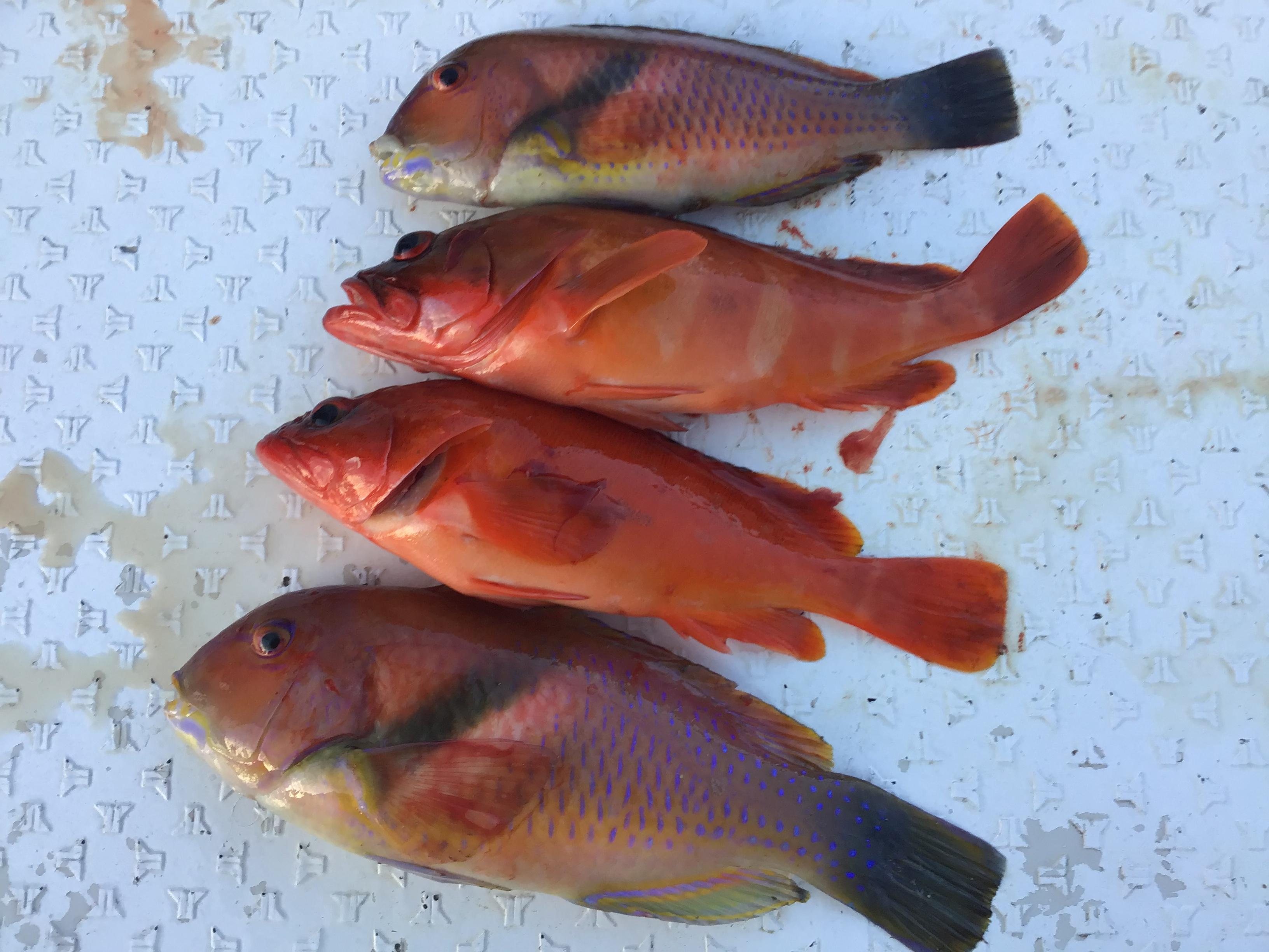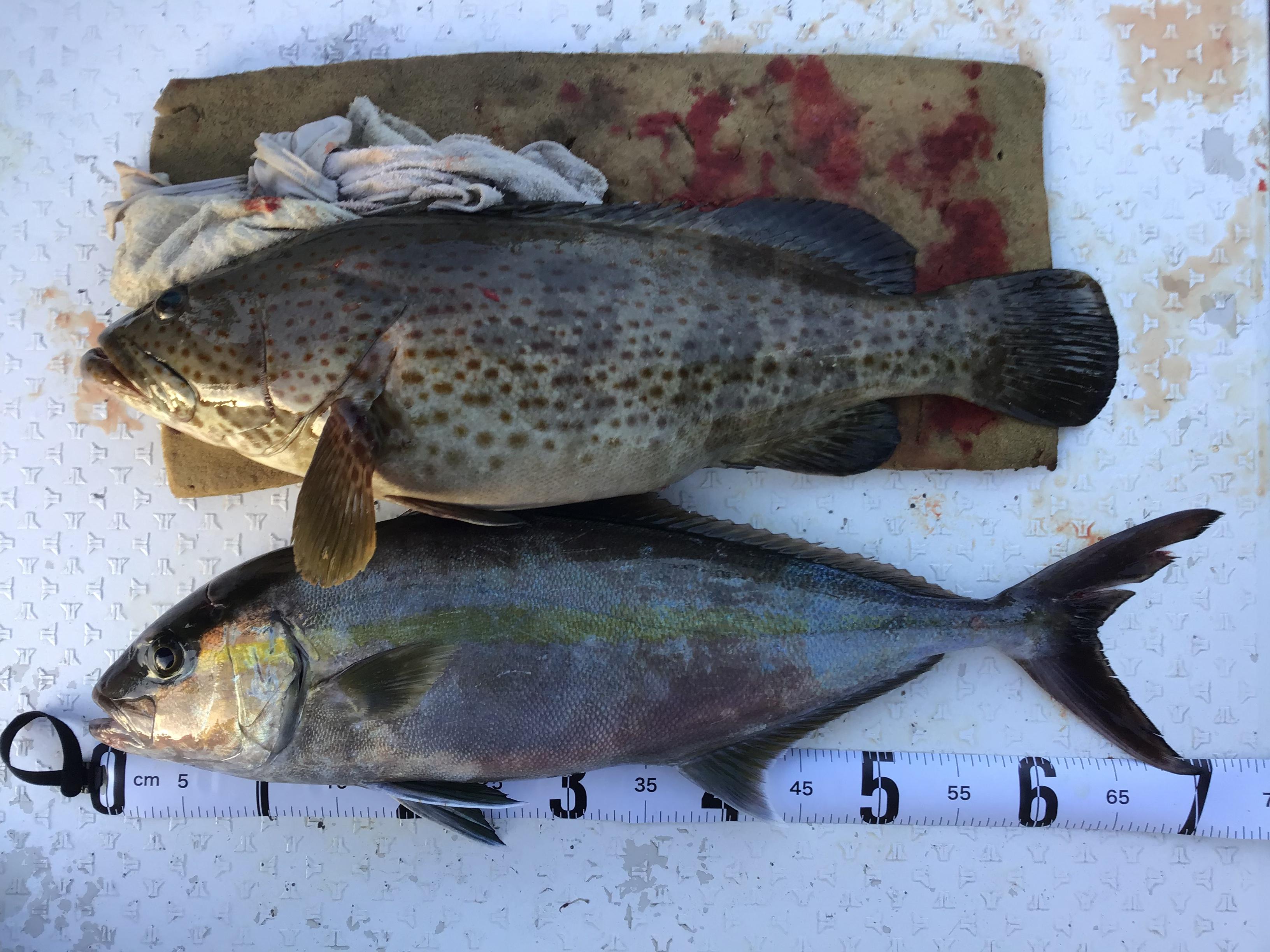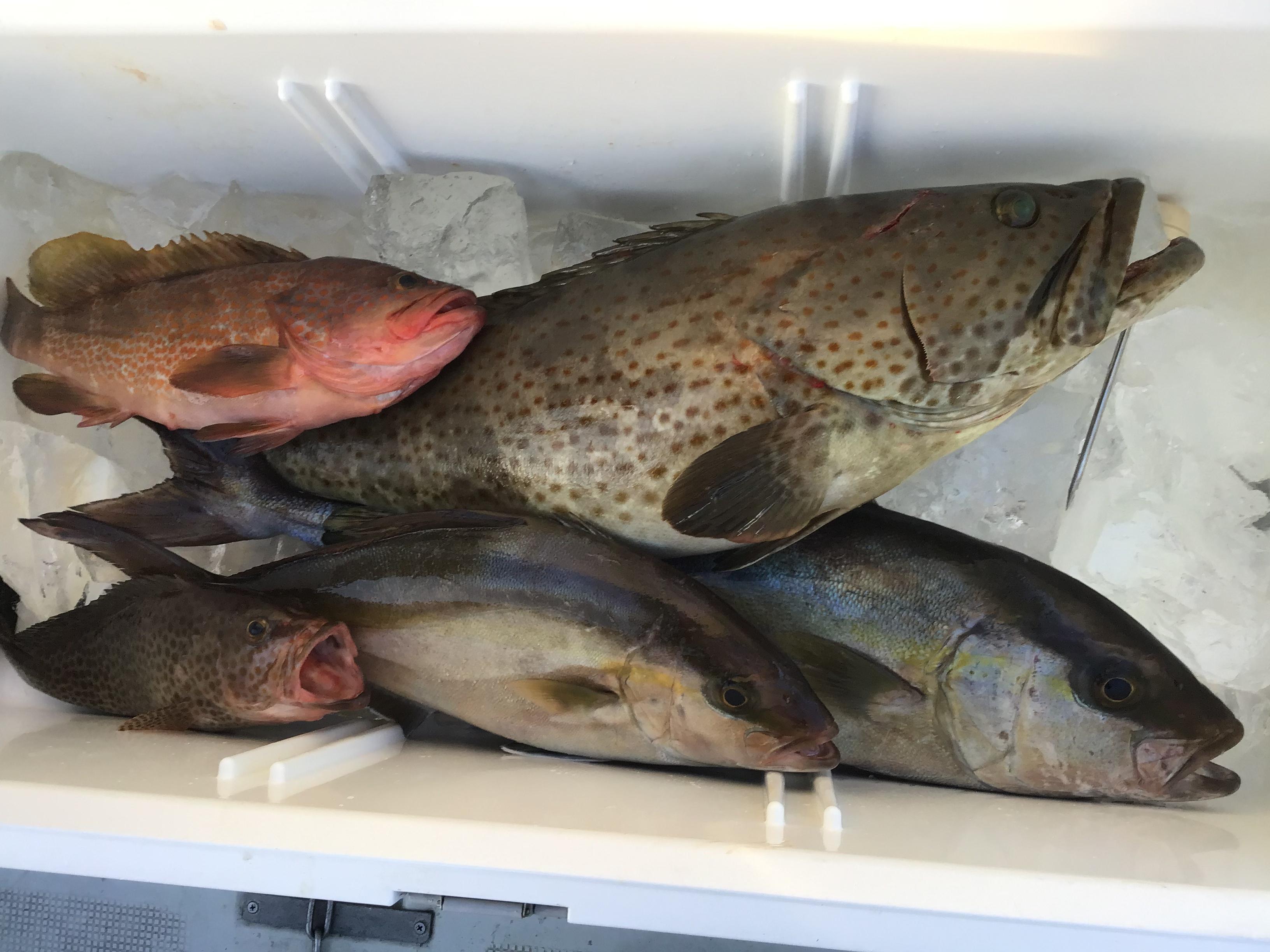 昨日はお二人フルでの釣行でした。午前中は予報通り北西の強風のため、風波を避けながら、浅場での釣りになりました。ここでまさかの40センチ越えのキジハタ、65センチ4キロのゴマアラ、60センチ程のヒレナガカンパチなどが次々に上がりました。昼から風波がおさまり沖に出ましたが、ここで更に73センチのヒレナガカンパチ! 残念ながら、カンパチらしいあたりのバラシも数回ありましたが、オオモンハタやアカハタなどを追加し、終了となりました。港に帰って生け簀で泳いでいるデカバン達の処理をしましたが、やはり迫力満点でした。写真のように、大型クーラーにこれだけの魚を一人で並べられるとは、凄い! 出船前に「船長、今日は絶対釣れると思いますよ!ねっ」と元気におっしゃっていて、「ねっ」って言われても「何を根拠におっしゃっているのだろう?船長としては、そこまでの自信はないんだけどなぁ〜」と思っていましたが、有言実行の素晴らしい釣果に驚かされました! 凄っ! ![]() ![]() ![]() |