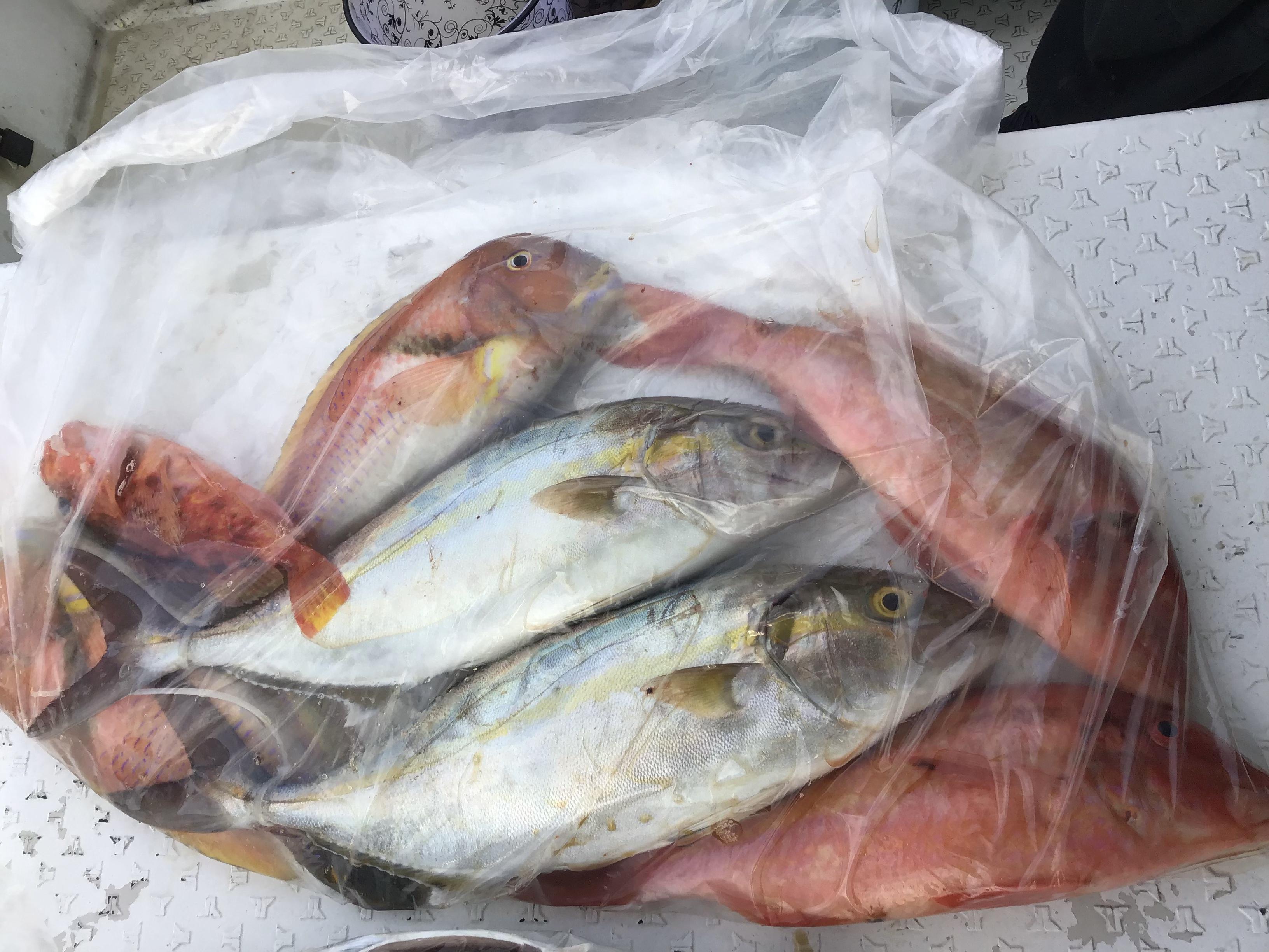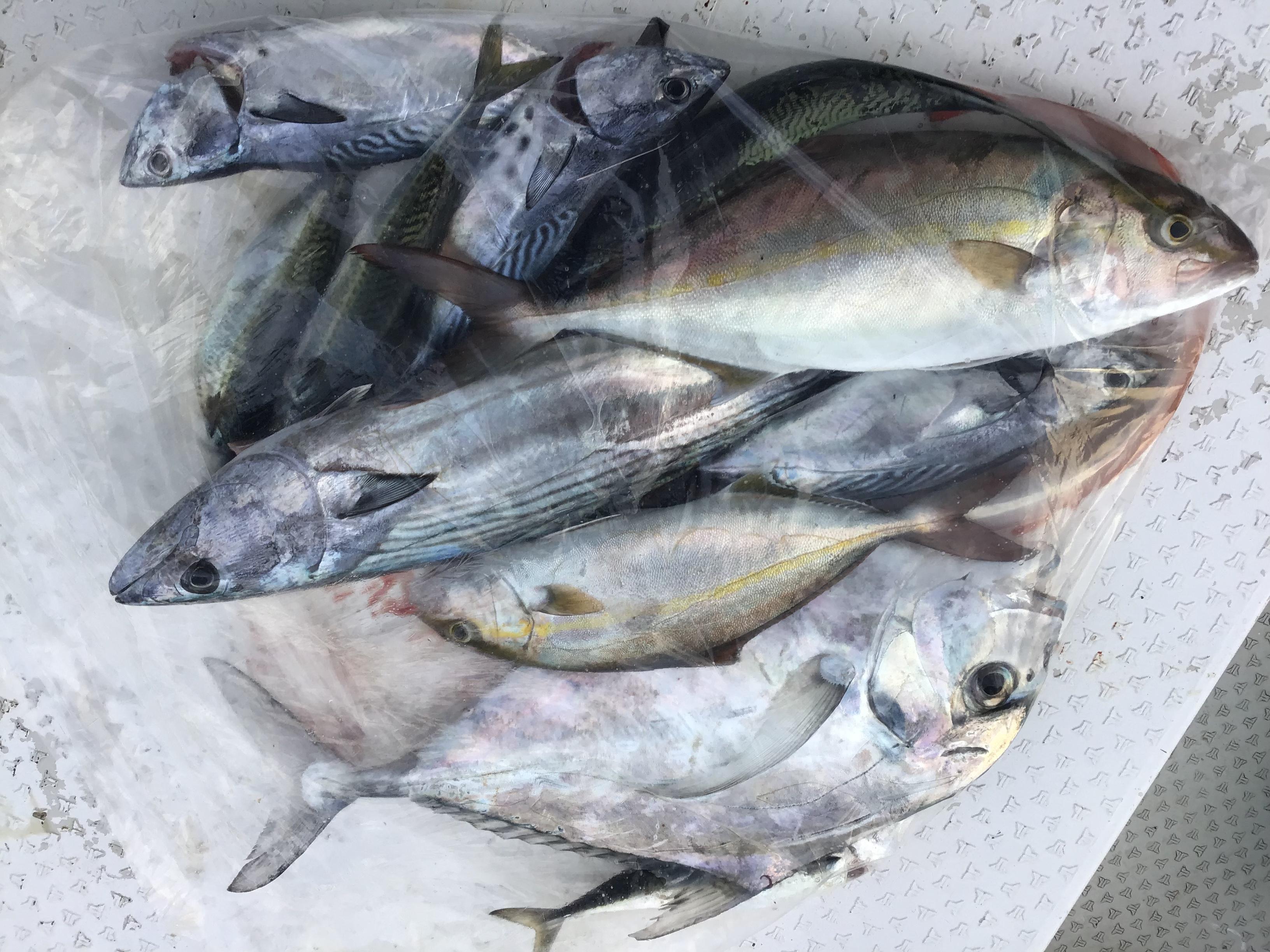昨日は3名様フルでの釣行でした。予報に反して風波があり沖のポイントスタートとなりました。ここでサバやヤイトが当たりますが、お目当てのカンパチがヒットしません。昼前からからようやく沖の沖に出ますが、狭い範囲でパラパラとヤイトやサバ、オジサンなどがヒット。するとようやく、ドラグを逆転させる引き。60センチ程の美味しそうなハガツオでした。さらに美しいネリゴ。しかし、潮が緩く船が動かない渋い状況でその後が続きません。ポイント移動を繰り返し、粘り強く釣っていると、竿先が海中に引き込まれる当たり。すると他のお二人も同時ヒットで全員ヒット。上がってきたのは念願のネリゴ、カンパチでした。連チャンでヒット、ヒット、ヒット。タモ入れが間に合わず、ぶり上げたりして船上が一気に活気付きました。バラシが3本で、結局、ごく短時間の中で、釣り上げたのは40〜50センチオーバーのネリゴ4枚と65センチ程のイトヒキアジでした。何とか年末年始用の魚をゲットし、皆さんの粘り勝ちの釣行となりました。 ![]() ![]() |