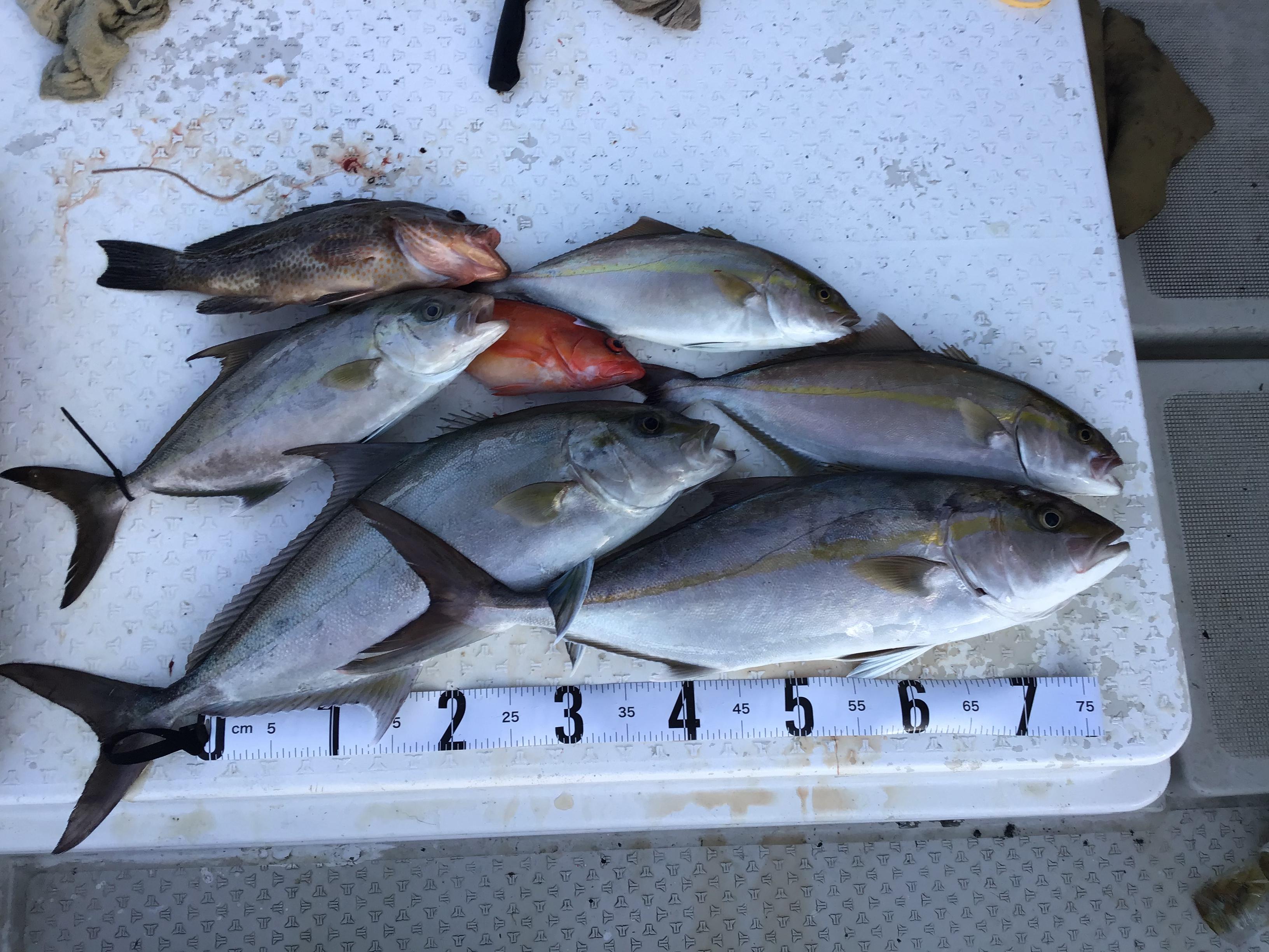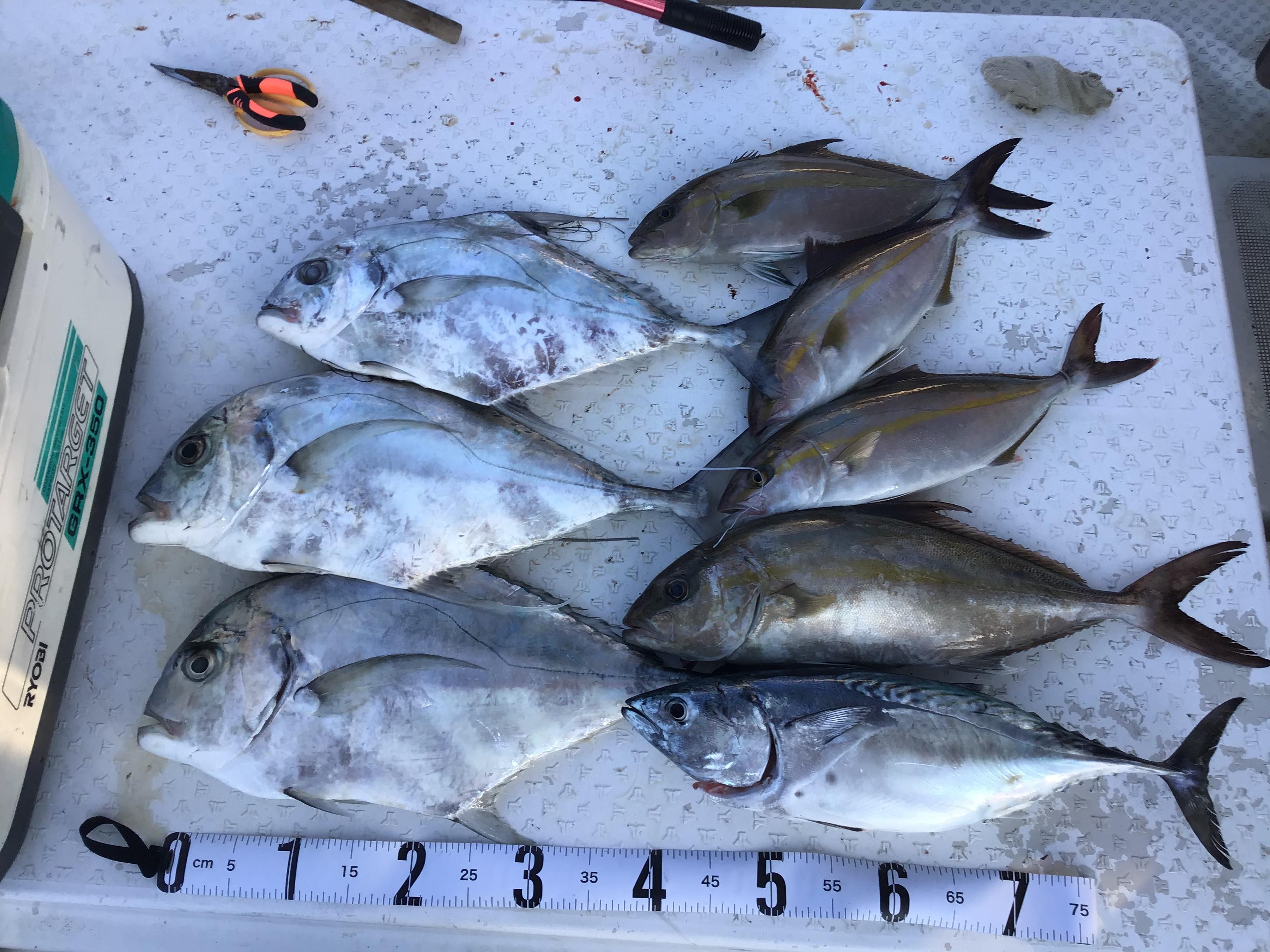 令和6年スタート。今年もよろしくお願いいたします。 昨日1月2日が今年の初出船でした。朝一のポイントからベイトの激アツ反応が続きますが、バイトなし。「これは今年の釣行はどうなることか?」と思って沖のポイントに行くと、激アツ反応が続きます。すると、すぐに竿先が海中に引きづり込まれるカンパチ独特の当たり。60センチオーバーのカンパチゲットとなりました♪ その後も流し直しや移動を繰り返し、70センチ程の本カンパチ、ヒレナガカンパチやネリゴ、60センチオーバーのイトヒキアジ等々を次々にゲット。さらには、60センチ程の丸々としたヤイトガツオなどを追加し、終わってみれば大漁の初出船となりました。お客様の見事なテクニックによる釣果でもありました。凄っ❗️ 正月早々、お疲れ様でした! ![]() ![]() |