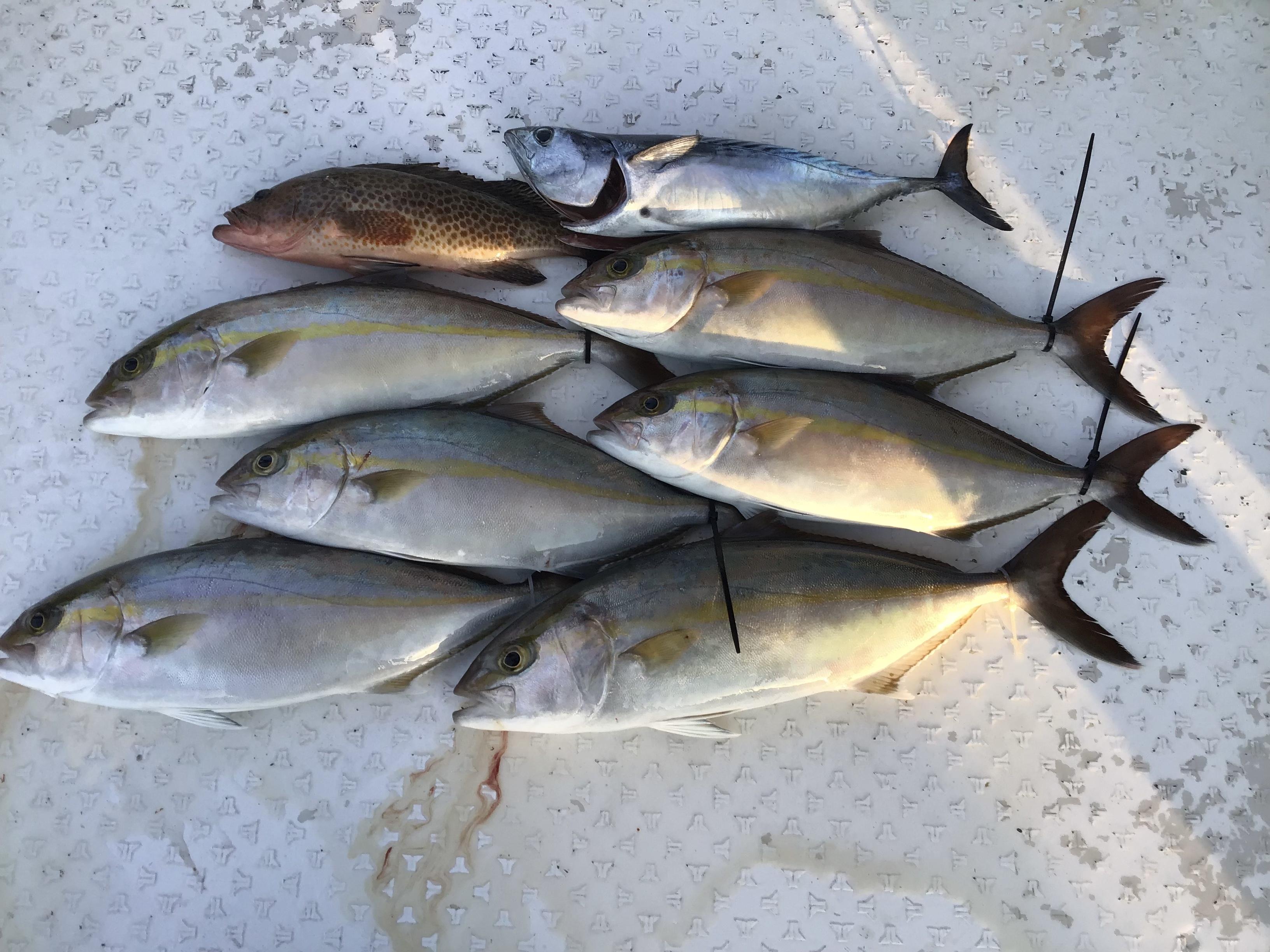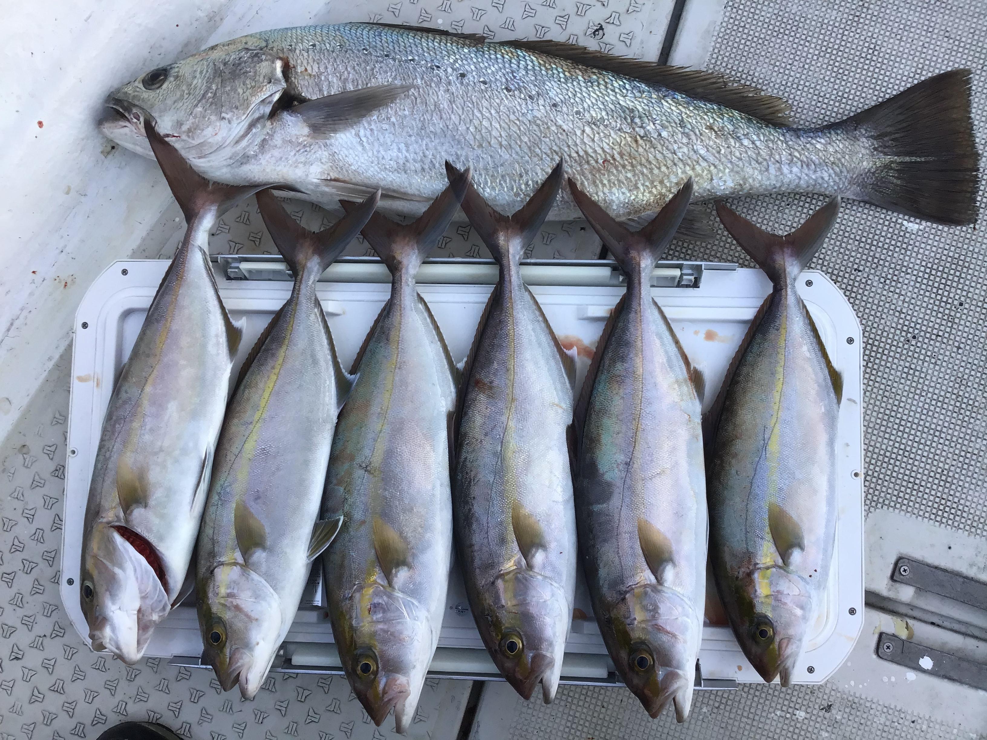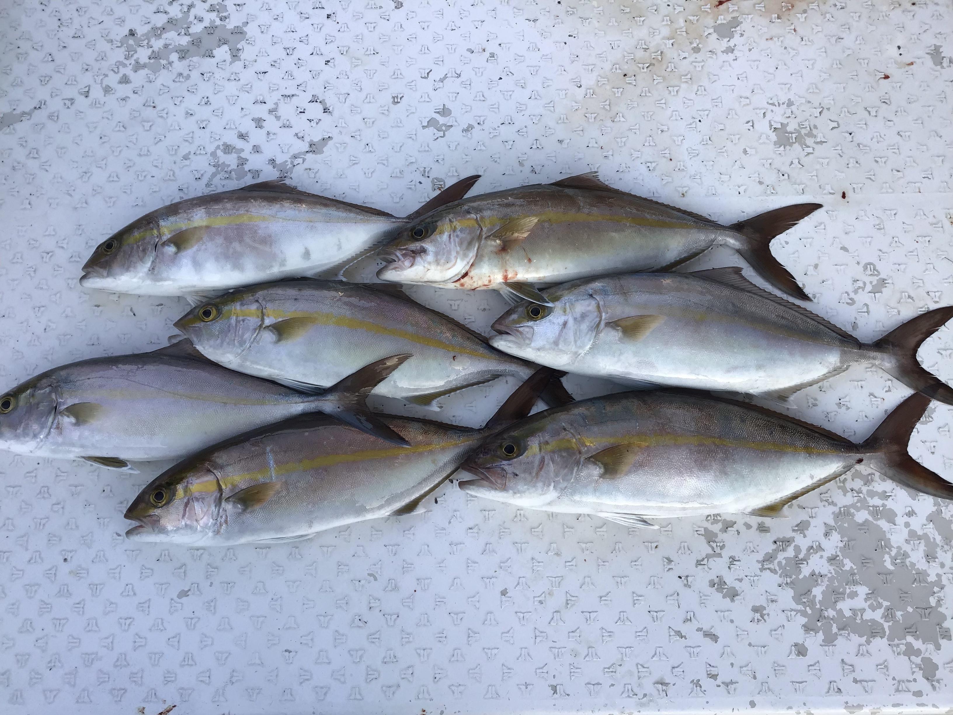 昨日は、本船で多くの釣果を上げている3名様での釣行でした。午前中はまたしても風波があり、10時くらいまで近場での我慢の釣りでした。3名様の腕を持ってしてもノーフィッシュ。その後、沖のポイントに行くと、早速、40センチから50センチのネリゴのラッシュに!午前中のうちに、それぞれ4、5枚をゲットされました。しかし風が止まり、潮が動かず、当たりが止まる時間帯が訪れ、ポイントを転々とすることに。先日、真鯛が出たポイントに行くと、竿先を海中に引きづり込む当たり。デカンパチか大鯛かと思われましたが、上がって来たのは80センチ程のオオニベでした。他にも大物と思われる当たりがそれぞれ数回ほどありましたが、ラインブレイクやハリはずれで仕留めることはできませんでした。その後、ラッシュとはなりませんでしたが、それぞれ、ネリゴをパラパラと追加され、納竿となりました。 12月以降、午前中は風波があって沖に出れず、昼から沖に出れるパターンが圧倒的に多いように思います。自然(気象)のことなので断定はできませんが、もしハーフで行かれる際は、午後ハーフがお勧めです♪ 写真は3名様、それぞれの釣果です! ![]() ![]() ![]() |