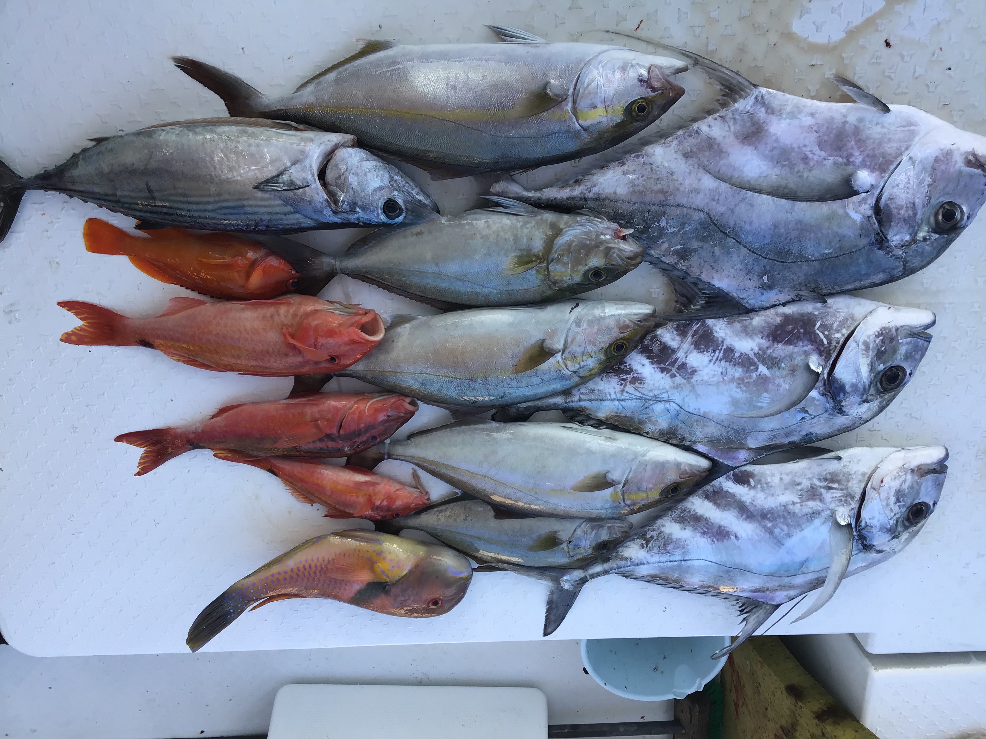昨日はフルチャーターでの釣行でした。朝のうちは風波があり手前で辛抱の釣り。反応はありますが相変わらずバイトなし。風が少し落ち着いたタイミングで沖のポイントへ。ここでも反応がありますがバイトなし。更に沖の沖のポイントへ。ここで大物のバラシやジグに触ってくるけど竿に乗らずという状況。時合いがくれば釣れると確信して、更に沖へ。ここでベイト反応のない中で、竿先を海中へ海中へと引き込む当たり。上がってきたのは55センチ程のカンパチでした。その後、久々にボイルが発生。追いかけ回しましたが、沈むのが早くノーヒット。最後にお目当てのポイントに戻って勝負!35センチから50センチオーバーのネリゴや60センチオーバーのイトヒキアジ、美味しそうなハガツオなどが、同時ヒットを含めて連発!終わってみれば3名様で写真の釣果となりました。今回も捌くのが大変そうです。お疲れ様でございます♪ ![]() |