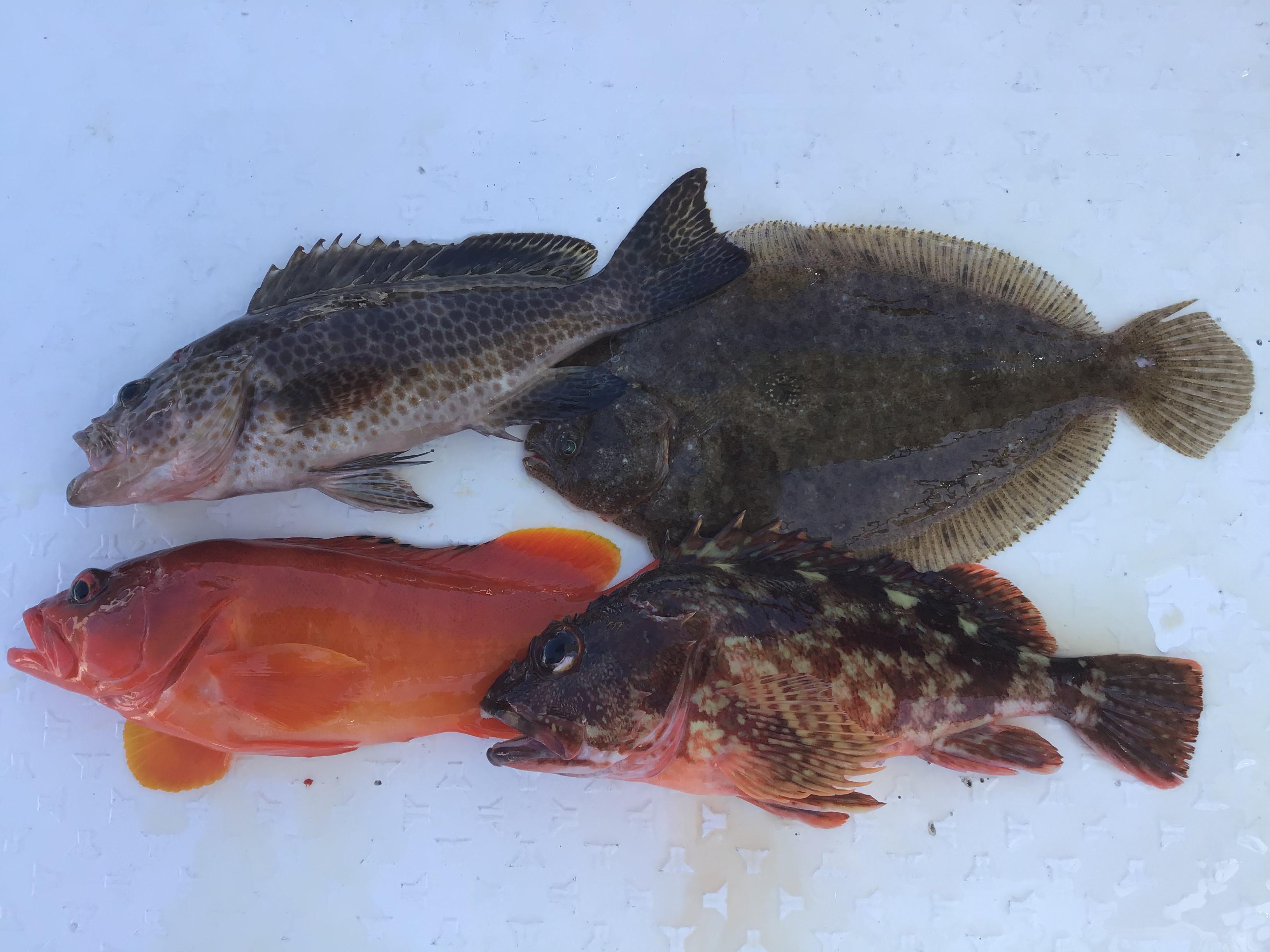 昨日は午後から強風予報のため、午前ハーフでの出船でした。前半強風のため近場を巡る釣り。後半から沖に出ましたが、いずれも忍耐力を要する釣りとなりました。ベイト反応がたまに出るものの当たりが出ず、各ポイントでポツンポツンと拾う釣りになりました。結局ジギングでは当たらず、タイラバで根魚を掛けていく感じでした。釣果は写真の通りでした。 ![]() |