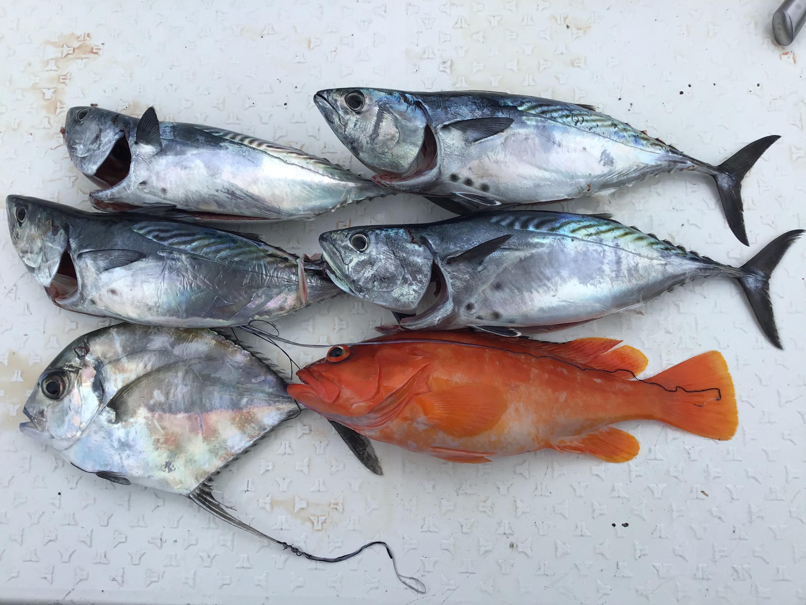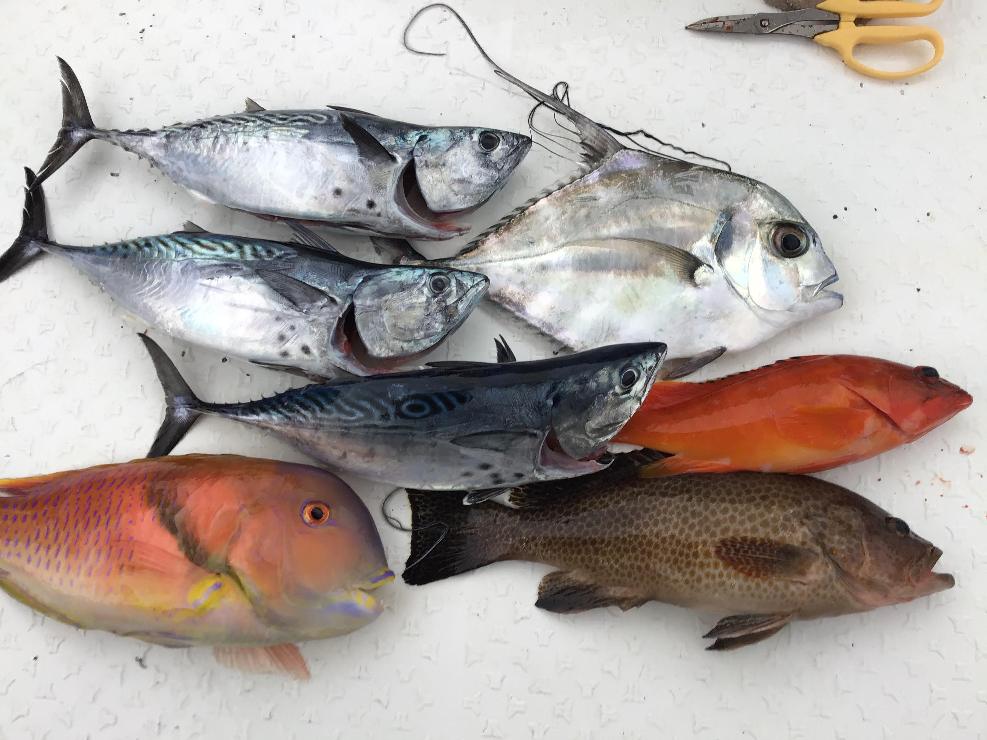 昨日は、午前ハーフお一人様、フルお二人様での釣行でした。前日とは打って変わってベタ凪。一昨日の入れ食いが頭から離れず、意気揚々と沖の瀬に出ましたが、ブルーの潮はなく、海が一変していることがわかりました。ナブラの気配もなく、さらに沖の瀬に。ベイト反応も少なく、我慢の釣り、拾い釣りになりました。波もなく、風もなく、天気は最高でしたが、船も動かず、潮も動かず。この厳しい状況の中、午前ハーフのお客様のタイラバにいい当たり。途中、竿を叩く感じがあったので真鯛かと思われましたが、上がってきたのは、50センチ弱のヒレナガのネリゴ。その他、竿を曲げるのはヤイトガツオ、アカハタでした。午後からは別の瀬に行ってみましたが、やはり潮が動いておらず、厳しい状況は変わりませんでした。そんな中でも、イトヒキアジ、ヤイトガツオ、オオモンハタ、アカハタを追加して終了となりました。終わってみれば、とても1軒では食べきれないくらいの釣果かな?ネリゴの写真は撮り忘れていました。 ![]() ![]() |