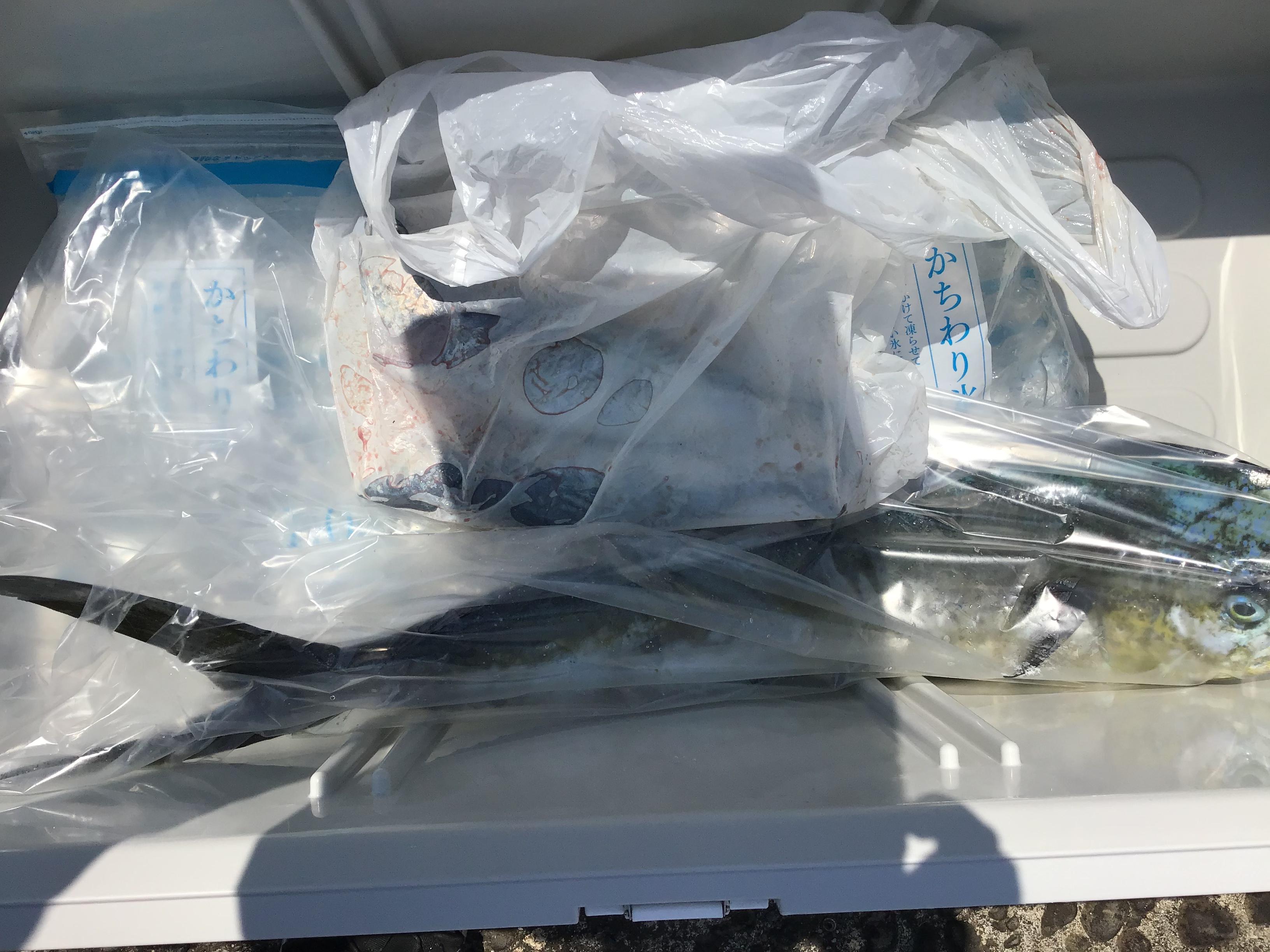 昨日も穏やかな海。潮の色も青々として美しい。沖に出て釣りを開始しますが、なかなか当たりがありませんでした。そこでさらに沖へ。するとトビウオが追われており、青物がバシャバシャやっていました。そのうち、はっきり確認できたのはシイラです。しかし船からは数百メートル離れており、近づこうとすると沈んでしまう状況でした。しかし、ここでヒット。竿先を海中に絞り込んでいきますので、おそらくカンパチ。しかしながら、痛恨のラインブレイク。その後、キャスティングのお客様にパワフルな当たり。そしてジャンプ!右や左へ走り回り、ジャンプも繰り返しますが、見事にゲット。70センチ程の本当に美しいシイラでした。その後もキャスティングでヤイトを追加して終了となりました。バラシが数回ありましたが、バイトが少ないので、ものにできるかどうかが釣果を左右する感じです。帰港途中も至る所でトビウオが追われてジャンプ。サワラも確認できました。ジャンプしたトビウオの直後から、シイラが追いかけるように横向きにジャンプし、空中で捕食しようとする様子も見られ、すげぇな〜と思いました。明日の釣果につながるといいのですが。写真はお一人分です。 ![]() |