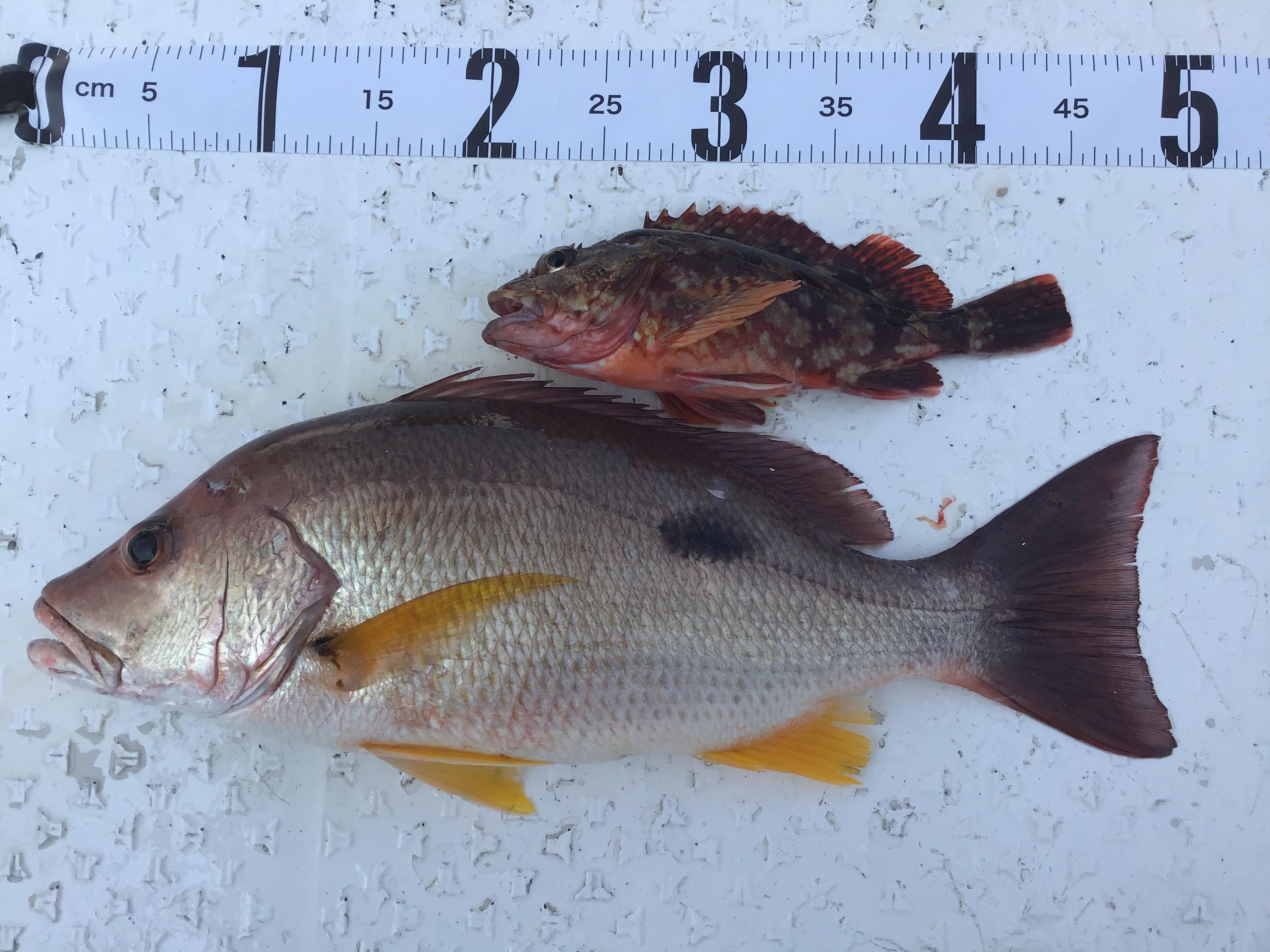 昨日も薄雲がかかり、波もなく釣り日和。午前ハーフ、お二人様での出船でした。ポイントにつくと、早速、重量感のあるあたり。竿は叩かないので、真鯛ではなく、ハタ系かなと思いました。ドラグを効かせながらゆっくりと上げてくると、前日に引き続き良型のクロホシフエダイでした。計測すると50センチ程あり、美味しそうな魚。今日も釣れるぞ!と思いましたが、狙いのネリゴ、カンパチ、根魚もノーバイト。下りの潮が速いためか、ほとんどあたりがない状況でした。結局、アラカブを1匹追加しただけで、終了となってしまいました。やはり、海はどう変化するのか分かりませんね!今日は予約が入っていないので、これから1人で、お魚ウォッチングに行ってきます。もし釣れればブログで自慢しようと思いますが、ブログを上げていなければ、「撃沈」です! ![]() |