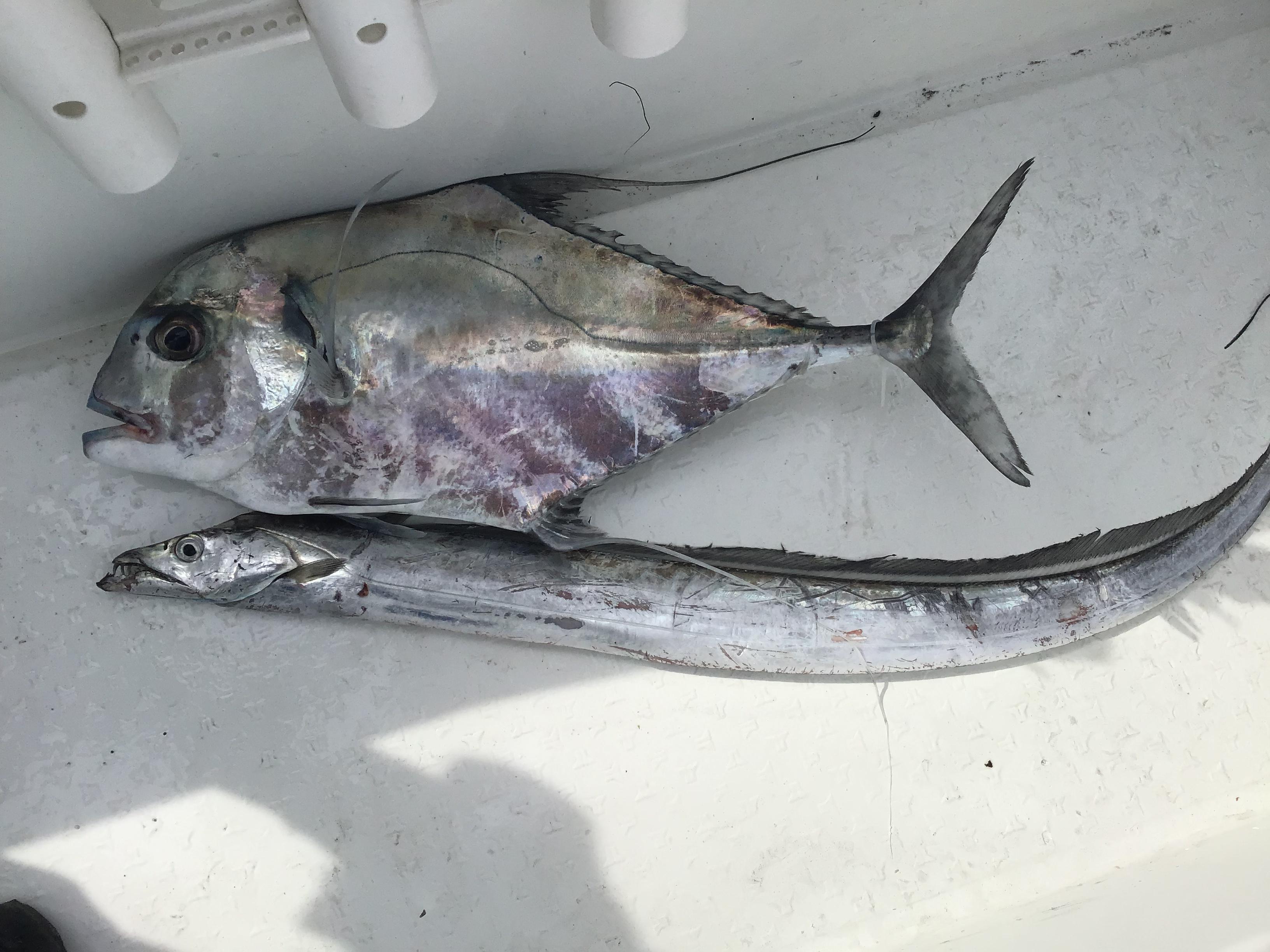 昨日が令和7年の初出船となりました。朝は強風予報のため、通常より遅い出発。予報通り風波があり、近場で様子見。すると、タイラバにワームをつけた仕掛けに、いきなりいい当たり。グイグイと竿先を絞り込んでいきますが、竿を叩かないので大鯛ではない様子。アラ?アラはこんなに引かないし、青物?憶測が飛びますが、見えてきたのはカンパチ。無事に取り込むと、70センチ弱のヒレナガカンパチ。新春1発目の魚が良型カンパチで「オッシャー❣️」というスタートとなりました。その後も、当たりがあり、今度は35センチ程のオオモンハタ。いずれも、タイラバではなく、枝針につけた100均ワームに喰ってきました。その後、ジギングにヒット。本船では珍しい指4本程のタチウオ。予報通り風が収まってきたので、沖に出ていきましたが、各ポイントでベイトの好反応が見られました。そして、またまたタイラバにいい当たり。重量感があり、時間をかけてやり取りをすると、最後は魚がクルクルと回って上がってきました。これは紛れもないイトヒキアジ。60センチオーバーの良型が、またまたワームにヒットしていました。その後、ジギングにもイトヒキアジが連発しましたが、タイラバ、ワーム仕掛けの当たりが圧倒的に多く、大爆発という感じでした。午前終了後、午後も出船しましたが、強風のため即終了となりました。 ![]() ![]()  |