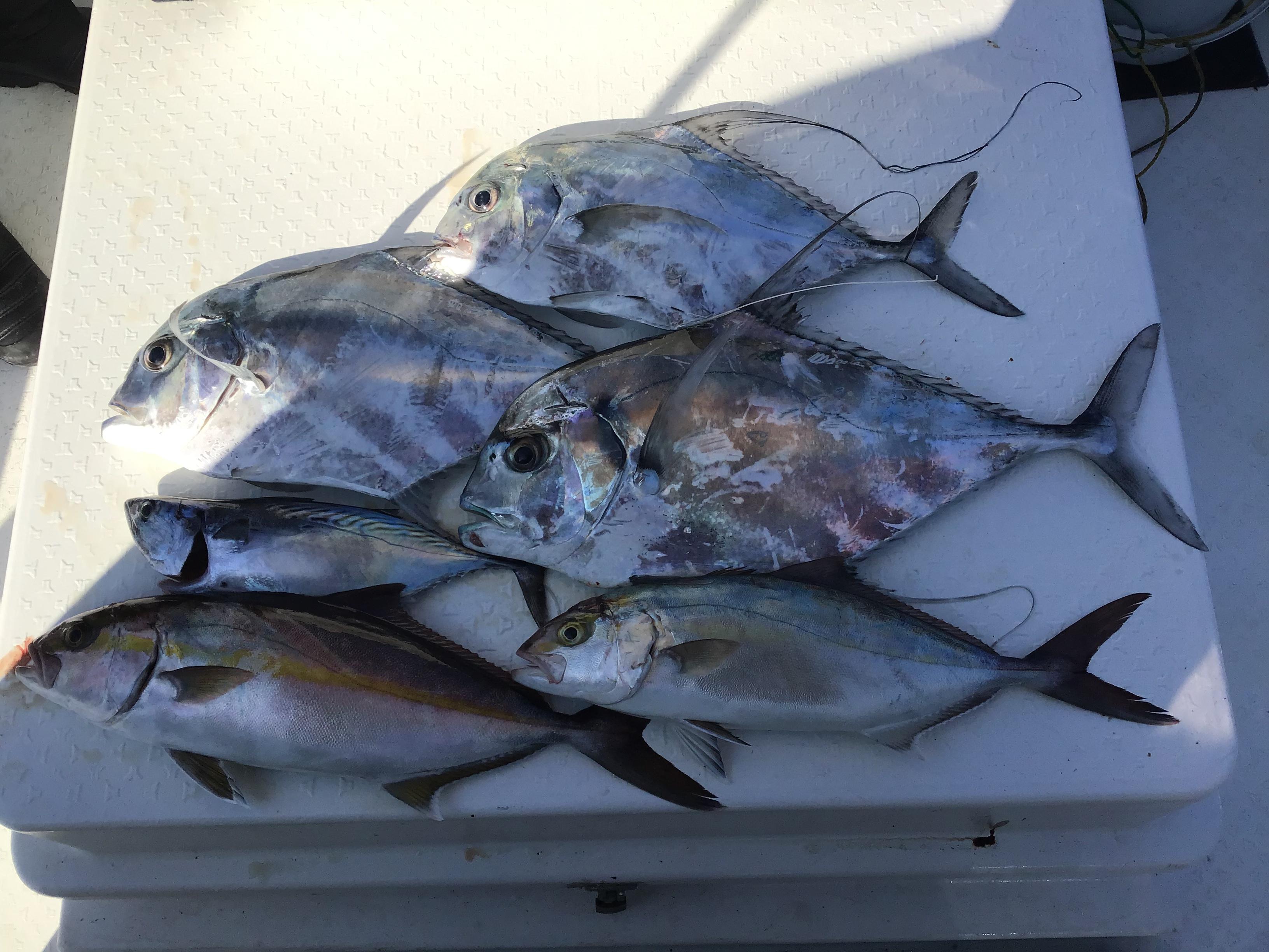 昨日は、地震もおさまったと判断し、お一人様チャーター状態「お昼ハーフ」の出船となりました。予報通り、風も波も大したことのない穏やかな釣り日和でした。沖に出てみると、ベイトの好反応が連発。しかし当たりがなく、早々に更に沖のお目当てのポイントへ。ここも激アツ反応が連発して、タイラバにものすごーくいい当たり。デカい!慎重に「やり取り」ならぬ「やりやり」という状態になり、ラインを引き出されたため、船で追いかけました。獲物との距離を縮め、浮いてきたのは、1メートル超の長い魚体。尾が上下に分かれていて、上が長い!「鮫だっ!」。左の胸ビレをいただこうと思っていましたが、最後は切られてしまいました。「ああっ、フカヒレが海に帰っていっちゃった!」。しかし、1メートル超の鮫を船べりまで引き上げることができたのですから、強靭なラインシステムが組まれているなと感心しました。さて、その後はジギングでもいい当たりが連発。60センチオーバーのイトヒキアジや60センチ弱の本カンパチなどが次々に釣れましたが、タイムアウト。後ろ髪を引かれる思いをしながら、帰港となりました。 ![]()  |