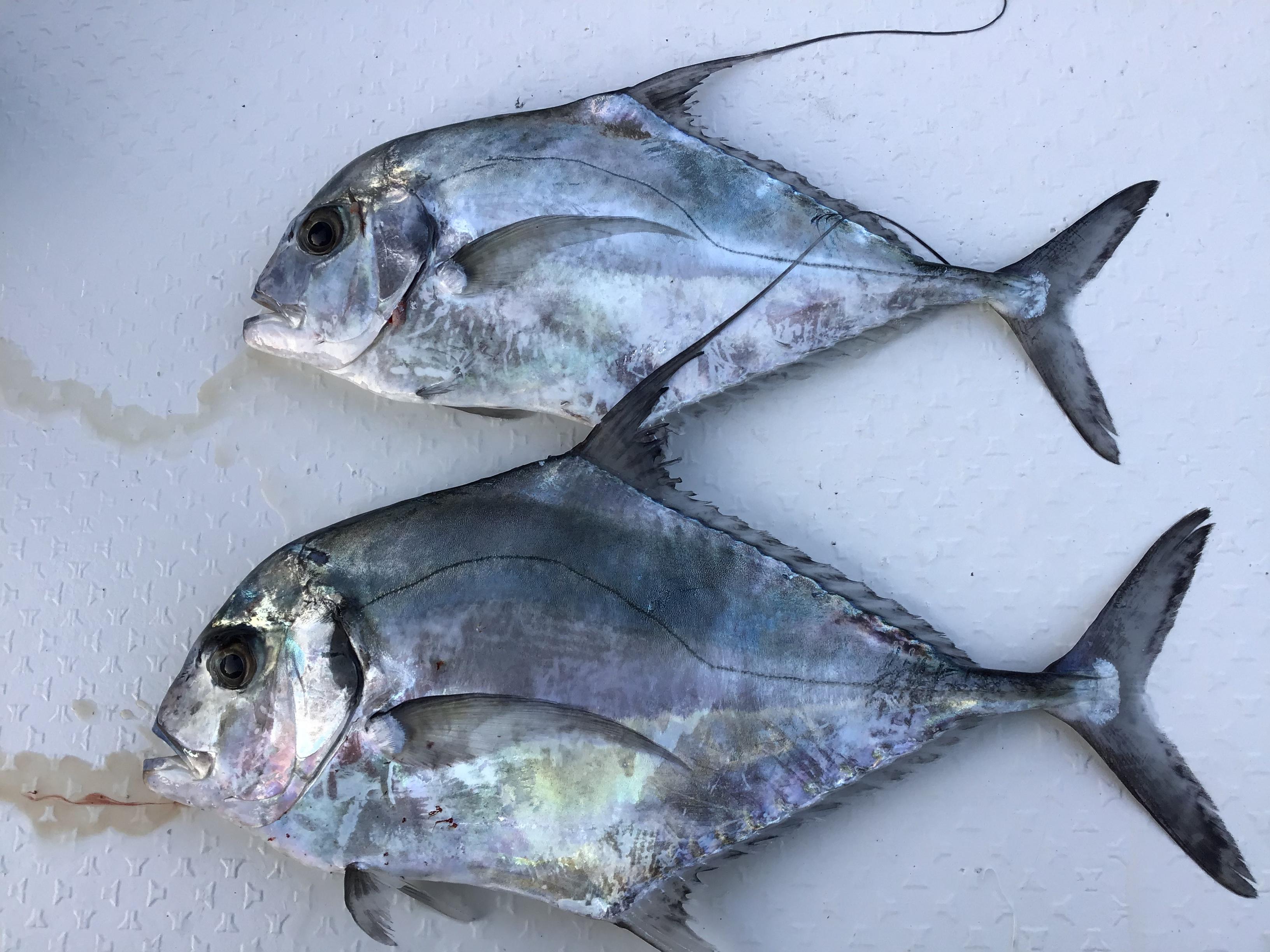 昨日は久々の出船となりました。午前中は風波があり、沖の瀬までしか出れませんでした。途中のポイントを次々に回ってみますが、当たりがない。沖の瀬周りを攻めて、ようやくいい当たり。あまり突っ込まないので根魚のデカ版かと思いましたが、浮いてくるとクルクルと回り始め、仕留めたのは60センチ程のイトヒキアジでした。その後、アカハタの30センチ弱を追加し、終了。午後ハーフでは、風が少し緩んできて、お目当てのポイントまで出ることができました。期待通りにベイトの好反応が連発しますが、当たりがない。午前中に引き続き、渋い状況が続きました。そんな状況の中でようやくいい当たり。これはよく引きましたが、またもやクルクルと!これも60センチ程のイトヒキアジでした。その後も渋い中にイトヒキアジ。タイラバに触りもしないという状況だったので、最後に近場のタイラバポイントに行くと、ここでようやくアカハタをゲット。午後は3回当たって3枚ゲットとなり、3打数3安打の10割の釣果となりました。そう言えば、午後は沖に出る途中、船から50mほど先のところで何やら5mほどの飛沫が上がり、その後、真っ黒の巨体が海面に現れました。更にもう一度飛沫が上がったかと思うと、真っ黒な巨体の、背中から尻のほうまでが順に海面に現れました。最後に「二股の大きな尻尾がザッパ〜ン」を期待しましたが、これは叶わず!しかしながら、ほぼ1年ぶりに、10m程の鯨(おそらくザトウクジラ)を見ることができました。2度目は船から30mほど先に現れましたが、ラブマリン号よりデカいので、ちょっと怖い感じもあったものの、久々に鯨に出会えてラッキーでした。 写真は午後ハーフお一人様の釣果です。 ![]() |