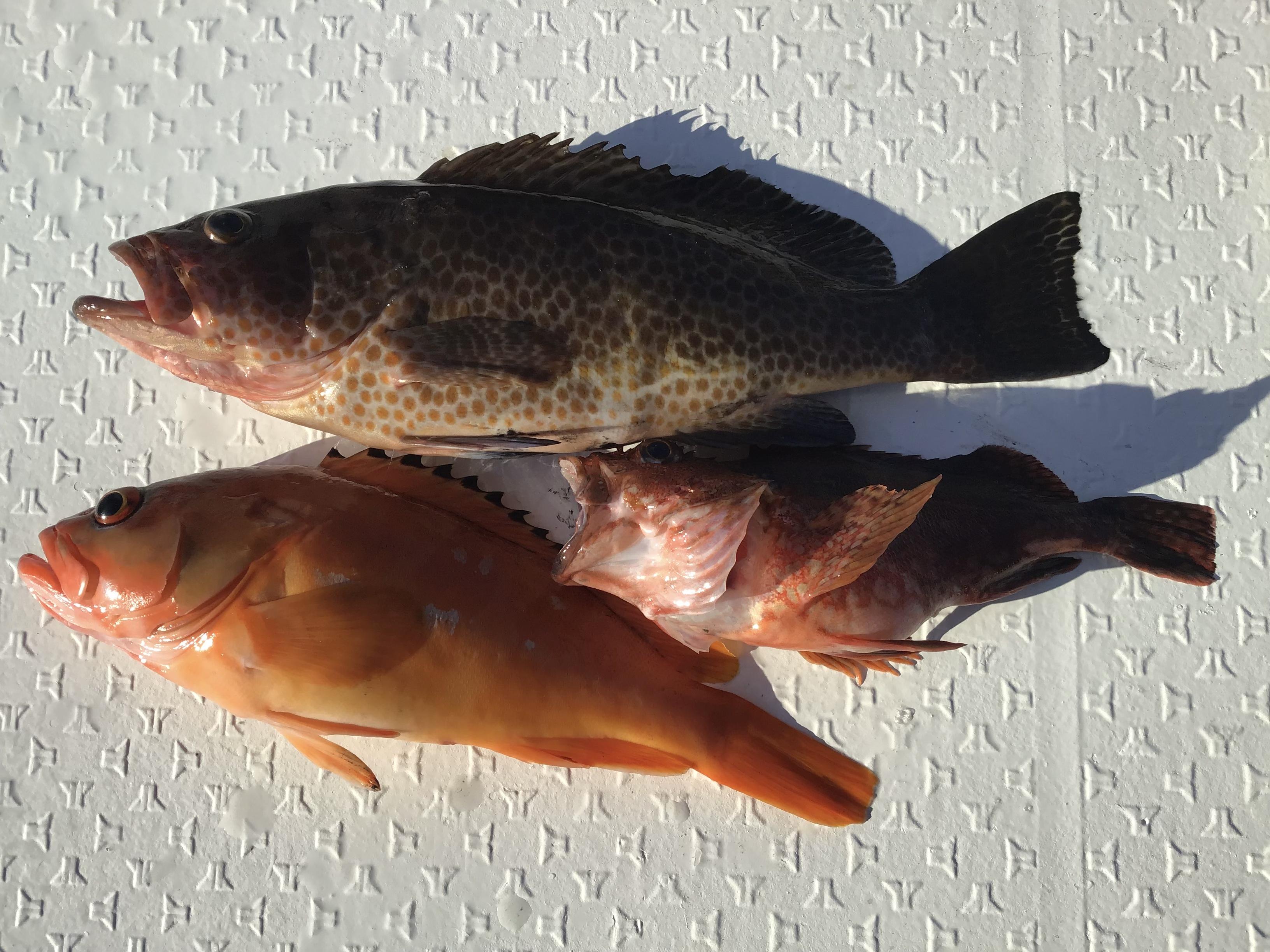昨日は朝のうちに強風予報だったので、ジャイアンツキャンプの混雑も気になりながら、1時間遅れでの出船でした。まずは近場で、風波の様子を見ながら攻めていきました。すると早速、当たり。25センチ程のオオモンハタで即リリース。その後、いい当たり。40センチオーバーの見事なオオモンハタでした。続いていい当たり。良型の根魚かと思いましたが、上がってきたのは、40センチ程の良型のイサキ。イサキは、冬場でも餌釣りで釣れているので、ジギングで釣れても不思議ではないのですが、釣れてくると「おお〜、イサキ!」と思ってしまいますね。これまでの実績からいくと、イサキはグリ金系のショートジグに反応するようです。さて、その後、沖行きを決断。風と潮が同じ方向なのでジグは真下に!当たりがない! 更に沖のお目当てのポイントへ。いつもの激アツ反応が見られず、まさかのノーバイト。午前中の最後に「ボーズ逃れのポイント」にいくと、イラと40センチ程の良型アカハタをゲット。ここで終了となりました。午後は、全く別方向の瀬に!パラパラと釣れてきますが、小ぶりのオオモンハタばかりで、全てリリース。西の強風予報が出ていたため、1時間程の早上がりとなりました。 ![]() ![]()  |
