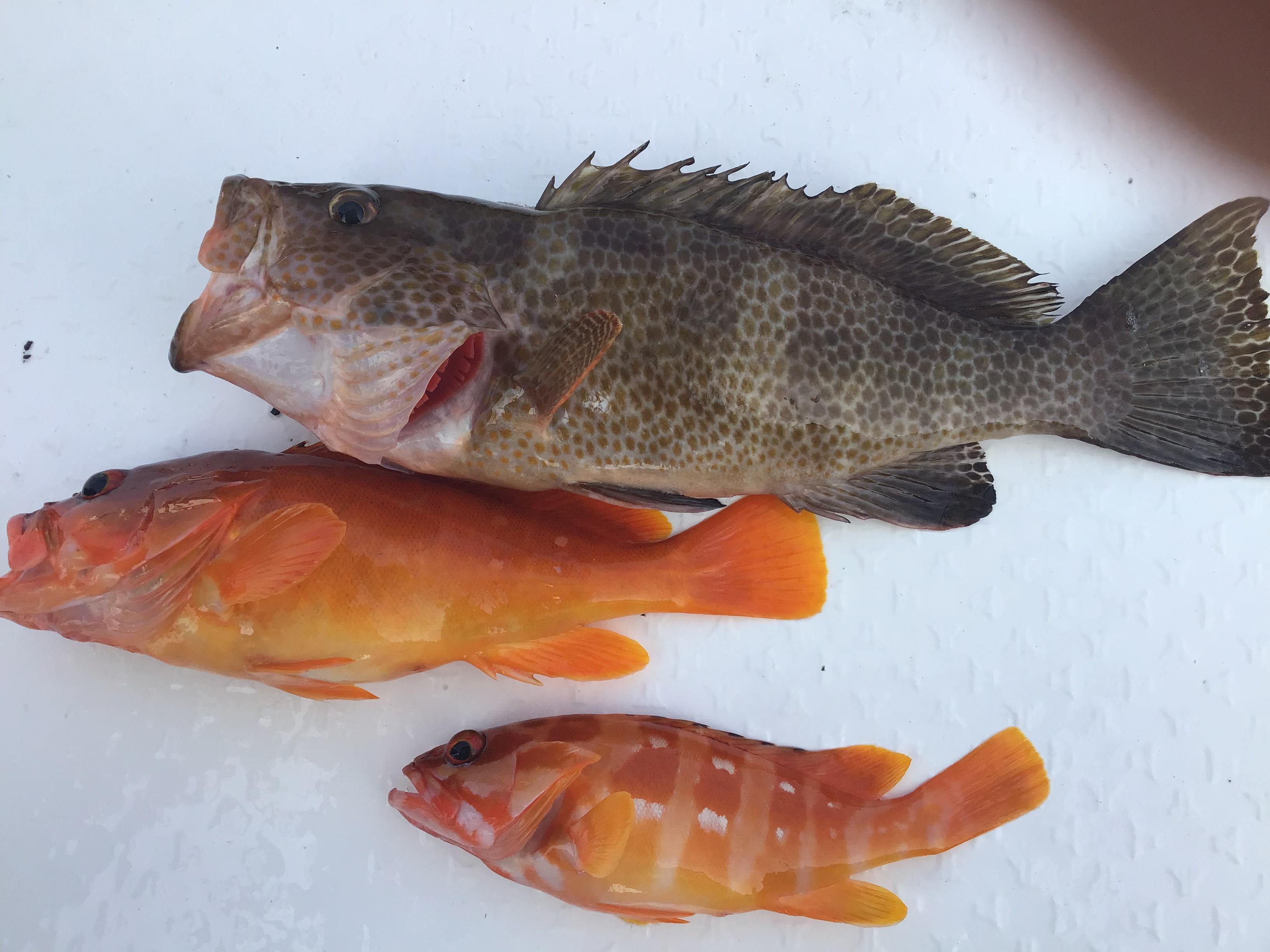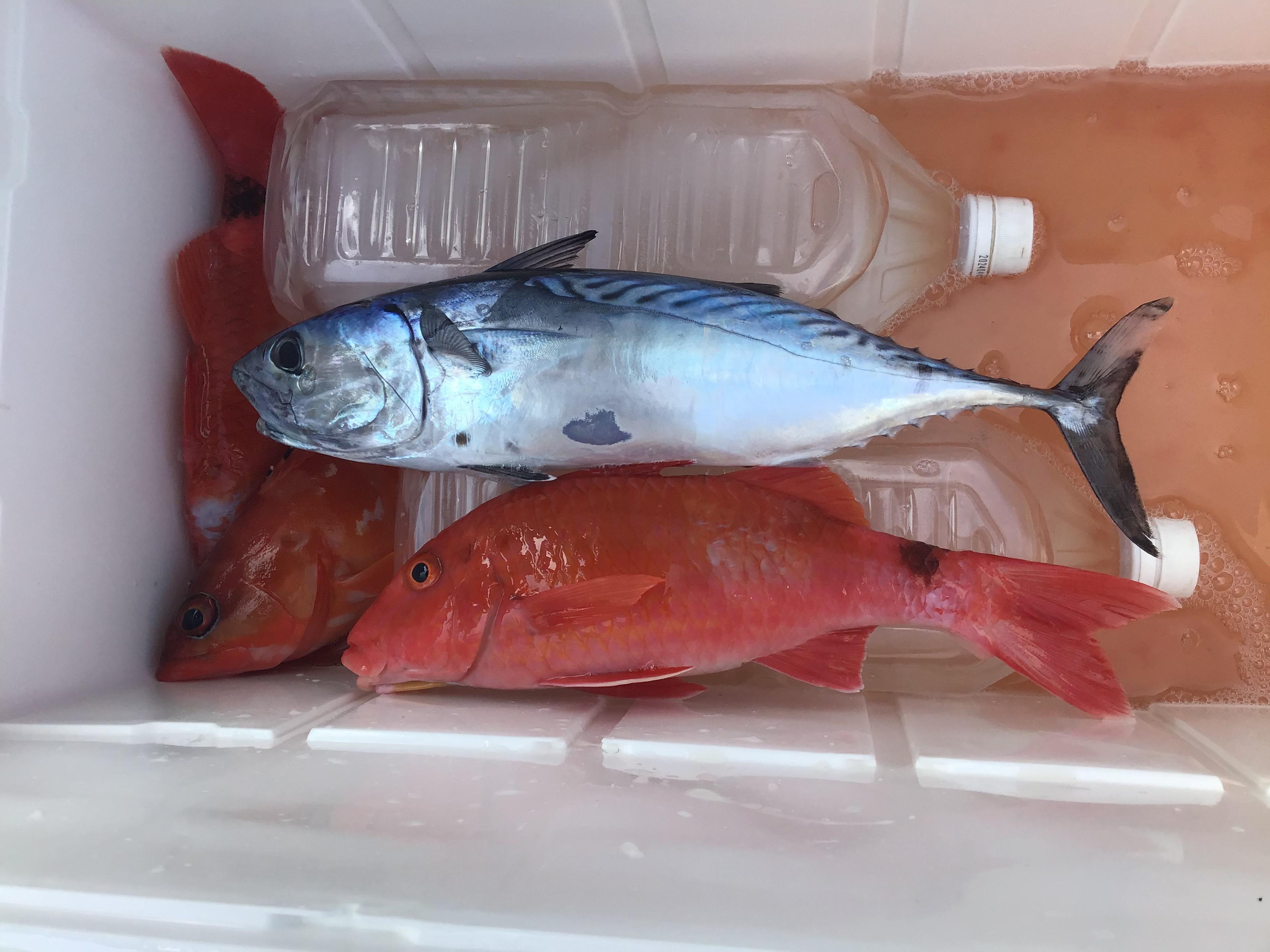 昨日は予報が好転し、朝からやれると判断しましたが、朝になって予報が再度急変。当たらなくて良い雨が午前ハーフの最後まで降りました。寒い中、ジギング、タイラバでチャレンジするものの、一昨日のトリプルヒット、巨大アラの気配もなく、渋い状況でした。そんな中にも、コツコツと釣果を伸ばし、良型アカハタやオオモンハタなどゲット。オジサンも相変わらず元気で喰ってきました。気温も上がらず寒い釣行でしたが、皆様、風邪をひかれなかったか心配しています! ![]() ![]()  |