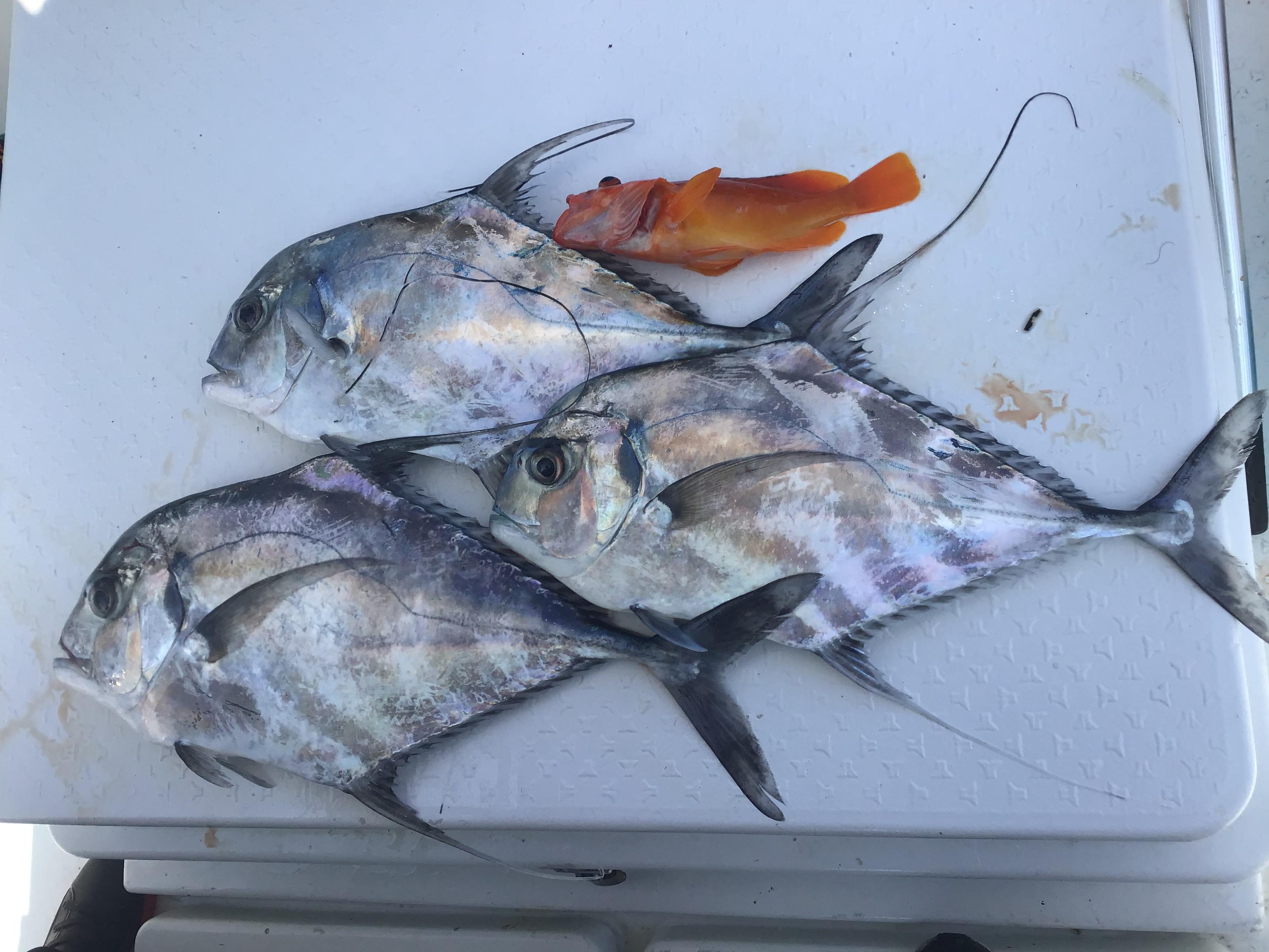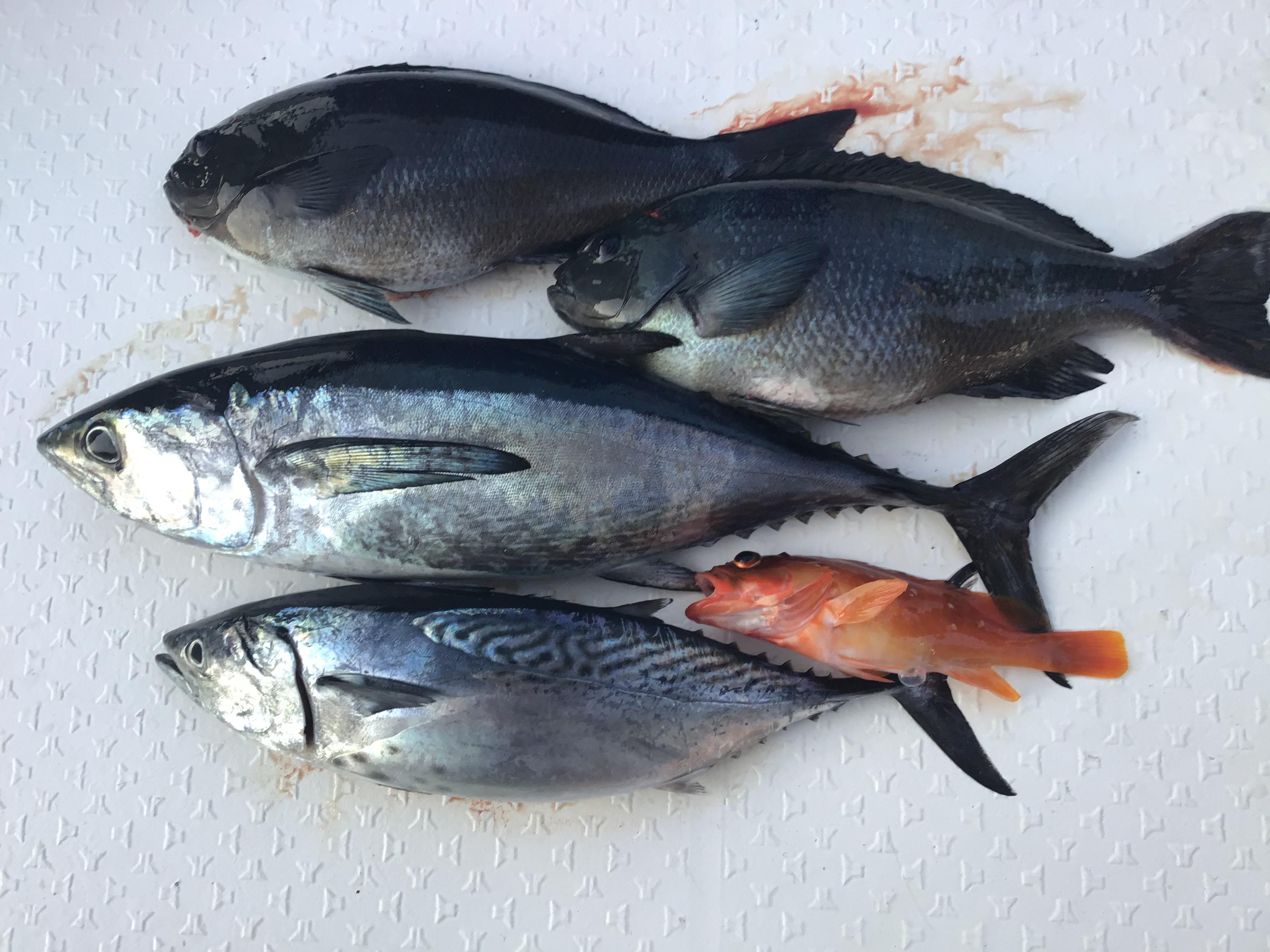 自分が参考にしている天気予報が、コロコロとまた大きく変化しており、予報に翻弄される日々が続いております。さて昨日は午前がお二人様チャーター状態での出船。早速、沖のポイントにいくと、激アツ反応が次々に現れるものの、バイトなし。ポイントを変えてみると、すぐにいい当たり。ドラグ音を鳴らせて海底に突っ込む魚は、最後にクルクルと回り、上がってきたのは60センチ程のイトヒキアジ。更に連発。アカハタも追加し、何とかお土産を確保。10時を過ぎたあたりから無風状態になると、潮も動いておらず、全く当たりの無い状態になり、そのまま終了。午後は親子二組のチャーターで出船。さて、どうしたものかと思いましたが、再び沖の瀬へ。潮は動いていないのでしょうが、東南の風が出ていて、船が流されていく状況になっていました。するとジギングにいい当たり。かなりの引きでカンパチの良型かと期待しましたが、最後は船の下に潜ったりと暴れ出しました。見えてきたのはカツオ?船内に引き上げてみると、60センチオーバーのコシナガマグロでした。その後、またヒット。コシナガかと思いましたが、50オーバーの美味しそうなヤイトガツオ。今度はタイラバにエビを付けた仕掛けに腹パンパンのキロオーバーのメジナ。さらにはジギングにまたまた腹パンパンの良型メジナ。ジギングでの初メジナでした。小学生の子供さんも何とかアカハタをゲット。お父さん達は針バレやラインブレイクの連発でノーフィッシュとなりました。午前も午後も、結構ジグに触って来るけど、竿に乗らないという状況が続きました。活性が今一つなのでしょうね。写真は上が午前お二人分。下が、午後の子供さんお二人分の釣果です。 ![]() ![]() |