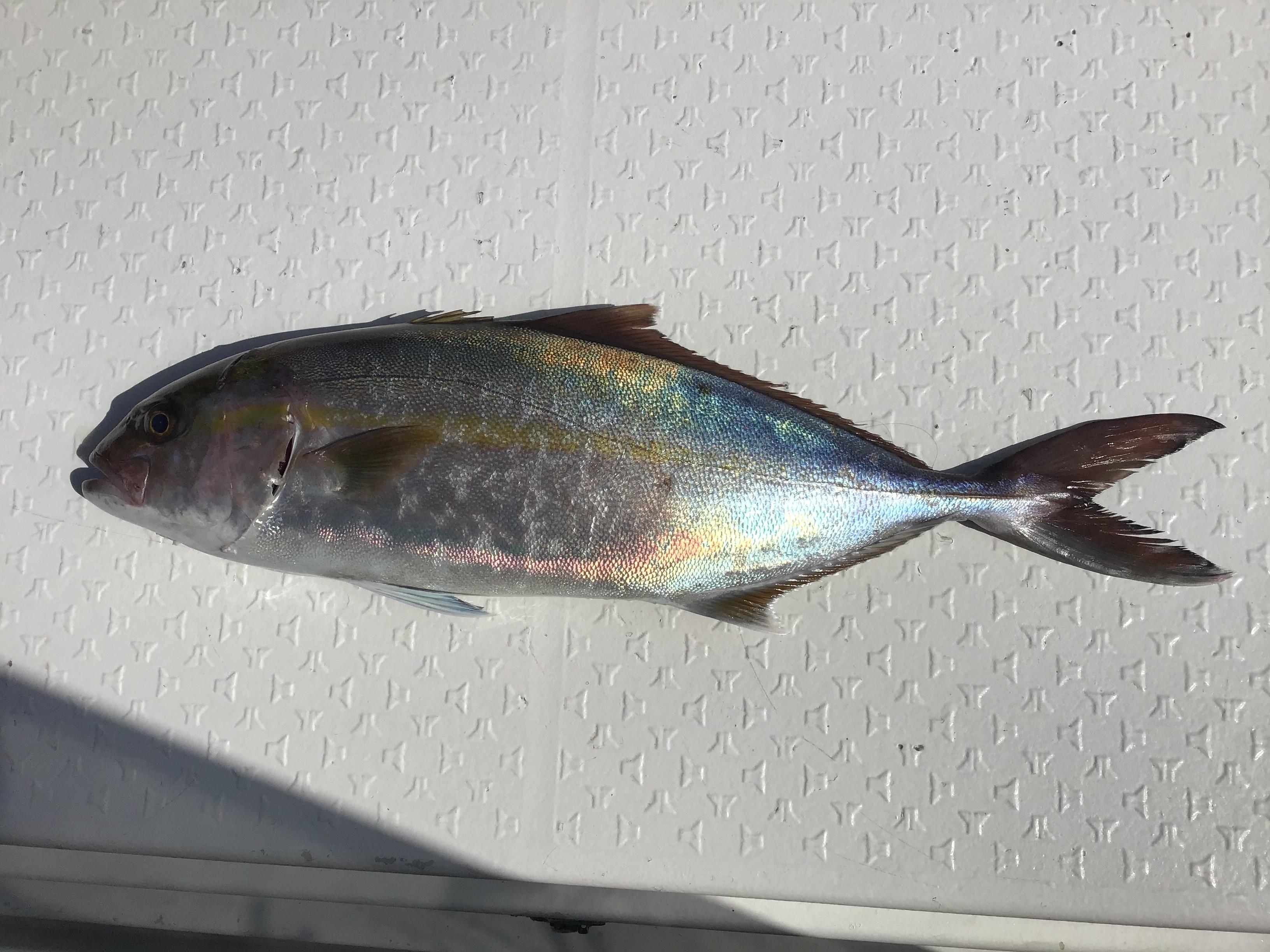 昨日は昼前から荒天予報!早朝に出船し、チャッチャと釣って、トットと帰ってくる作戦での釣行でした。想定通り海は穏やかで、一気に沖の瀬へ!すると、早速いい当たり。竿先を何度も何度も海中へと絞り込みます。この引きはおそらくカンパチ。ドラグ音が響き渡ります。やり取りを繰り返して浮かせてくると、予想通り、60センチ程の本カンパチでした。船内の雰囲気が一気に盛り上がります。その後も、ラインブレイクだったりと、一瞬、竿に乗ってバレたりすることが続きましたが、ここまで。次第に南東からの風が強まり、1時間程早上がりで終了となりました。あの瀬周りにはカンパチがいる! ![]()  |