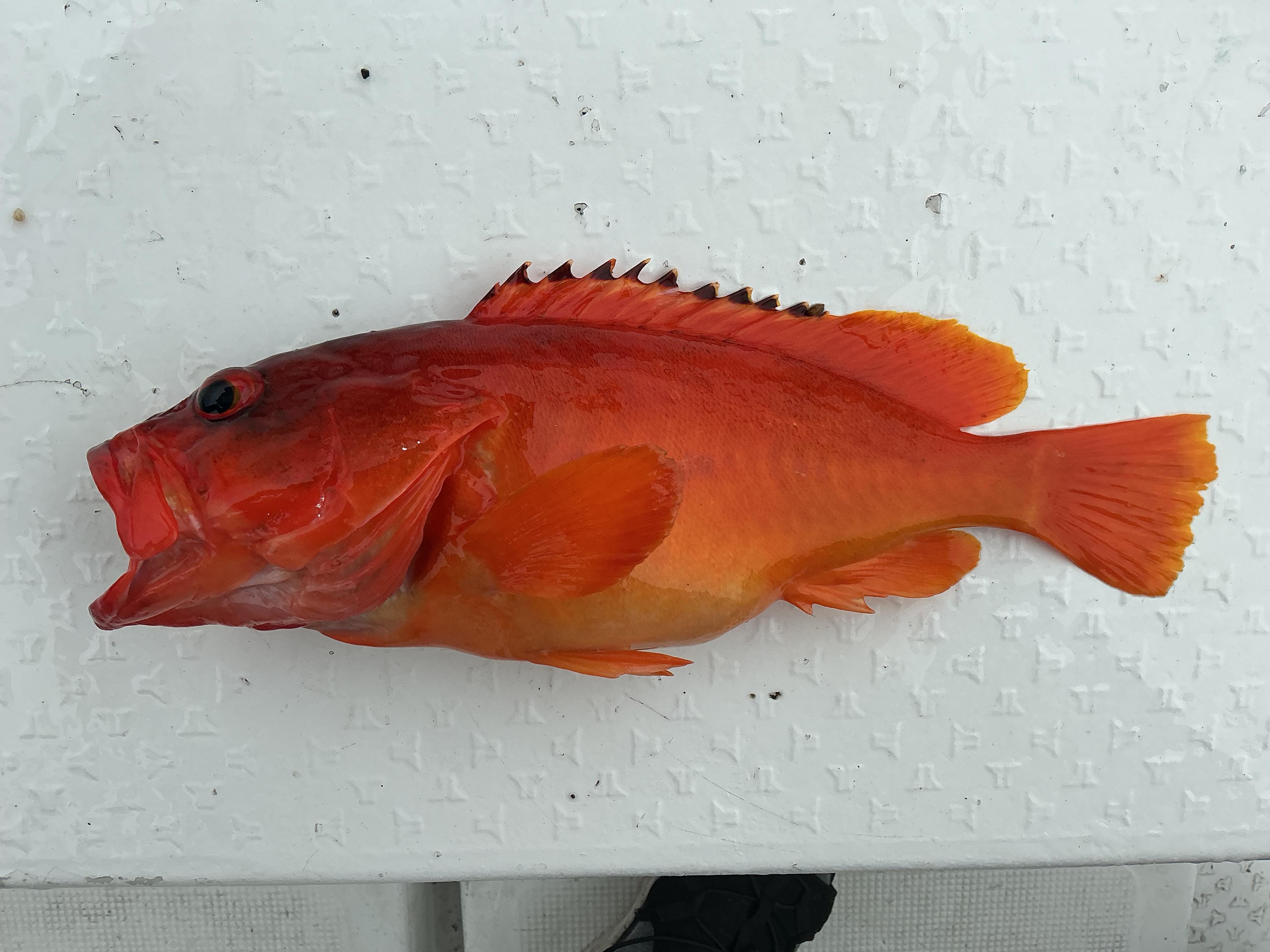 船のメンテナンスが終了し、昨日は1週間ぶりの出船でした。お一人様、フルのご予約をいただいていましたが、昼前から雷を伴う雨という予報のため、早朝出船、やれるところまでという釣行となりました。海は穏やかで湖状態。近場で様子を見た後、沖の瀬に出てみましたが、当たりなし。ただ、白金の魚体がパシャパシャとベイトを捕食するも、近寄ると沈んでいなくなるという状況。船の回りはサメだらけという状況もあり、久々に沖の沖まで出ましたが、ベイトもおらず厳しい状況。しかし、ここでタイラバの達人アングラーさんが、40センチほどの良型アカハタをゲット。ガッシー君も数匹当たりましたが、リリース。11時頃から本降りの雨となり、結局、このアカハタのみで終了となりました。近場の方がまだベイトがいる感じですね! ![]() |