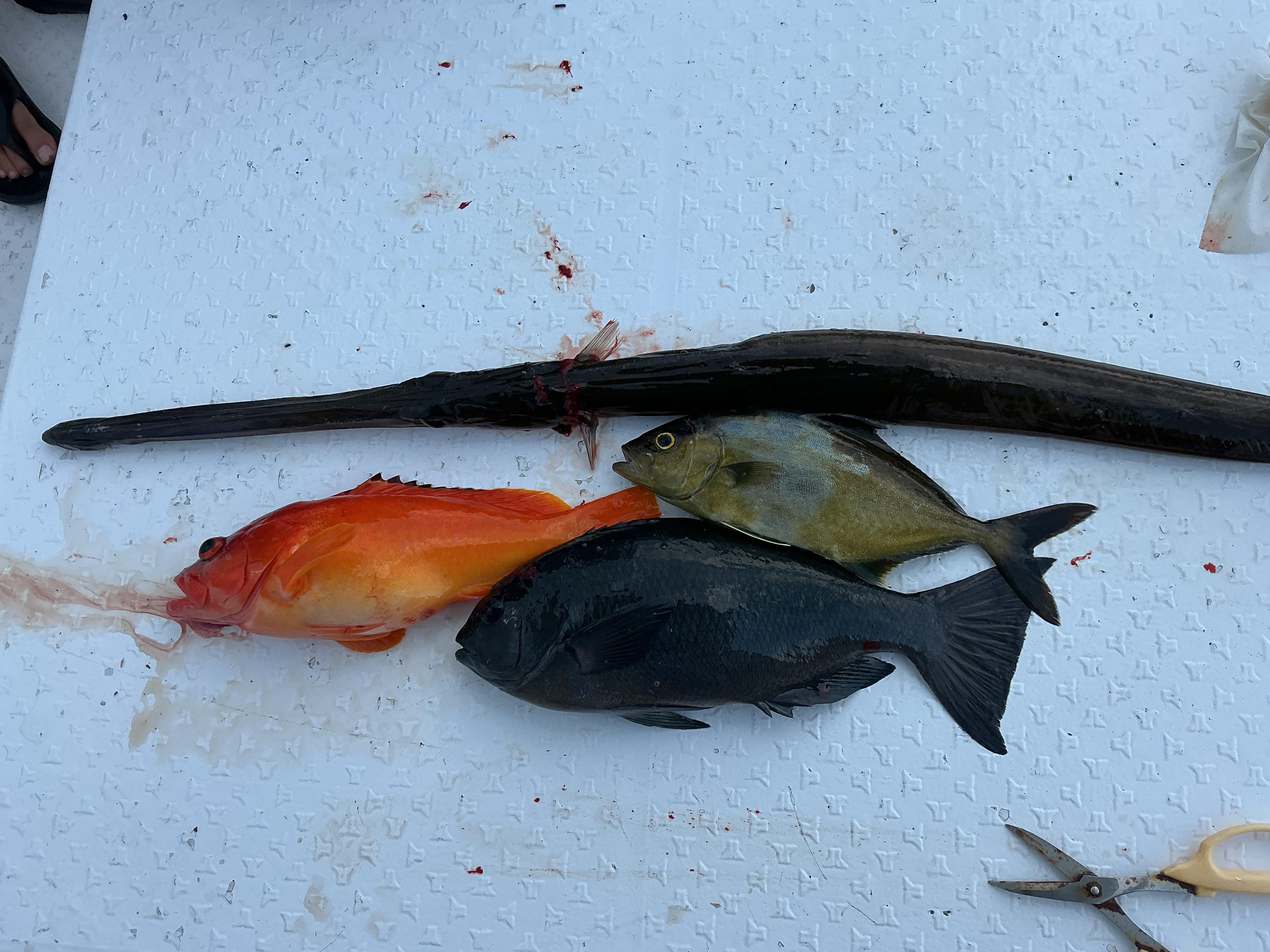 昨日は午後からお一人様チャーター状態での出船。台風も通り過ぎ、西の強風ですっかり穏やかな海に戻っていました。早速沖から攻めてみると、魚探にはすんごいベイト反応が!これだけの激アツ反応は珍しいと思っていると、青物の当たり。小ぶりでしたが、久しぶりにご対面のネリゴ。この後、入れ喰いかと思われましたが、数回のバラシで終わってしまいました。浅瀬にキャスティングに行くと、メジナのナブラ。何千匹というメジナのナブラは珍しくはありませんが、この下に、イサキや青物がいることがあり、それを狙ってキャスト。するとヒィ〜ット!やっぱりいたかあおもの〜っと思いましたが、いい引きを見せて上がってきたのは、何とスレ掛かりのメジナちゃんでした。アングラーさんは初めてメジナを釣ったと喜ばれていました♪ その後は、良型のアカハタやヤガラを仕留めて終了となりました。 ![]() |