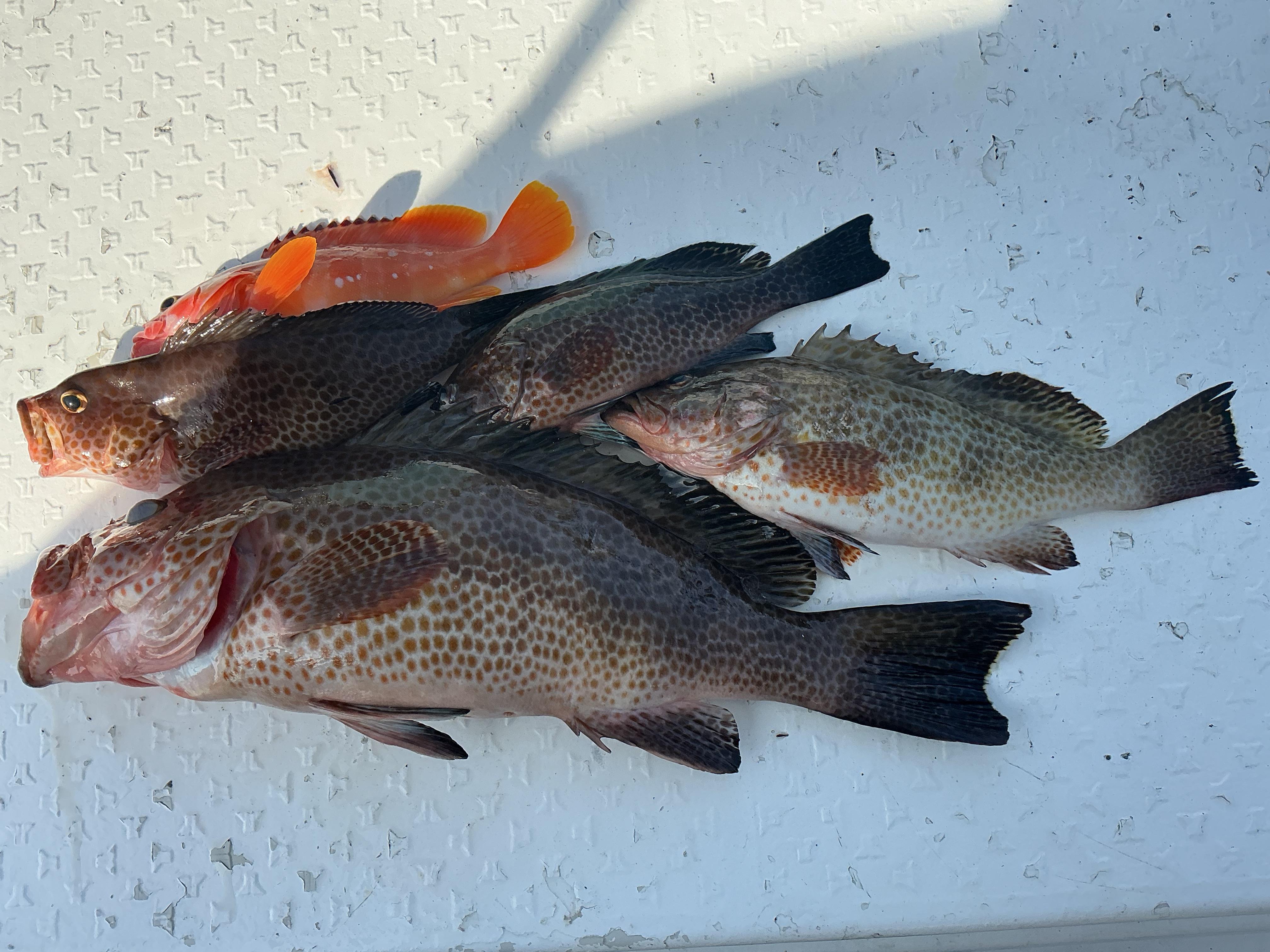 昨日は午前ハーフ、お一人様チャーター状態での出船。北の強風予報も出ていたので、近場オンリーを覚悟して港を出ましたが、予想通りの展開。近場を丁寧に攻めていくと,ジギングで早速オオモンハタ。オミヤゲットで一安心。しばらくするといい当たり。なかなかの引きで,ラインを引き出していきます。もしかしてカンパチかもという話になりましたが,上がってきたのは50センチ弱、顔がでっかくて、迫力のあるオオモンハタでした。その後も、オオモンとアカハタを追加。後半の半ばに風が緩んできましたが、穏やかな方がいいということで、沖に出ることなく終了となりました。 ![]() |