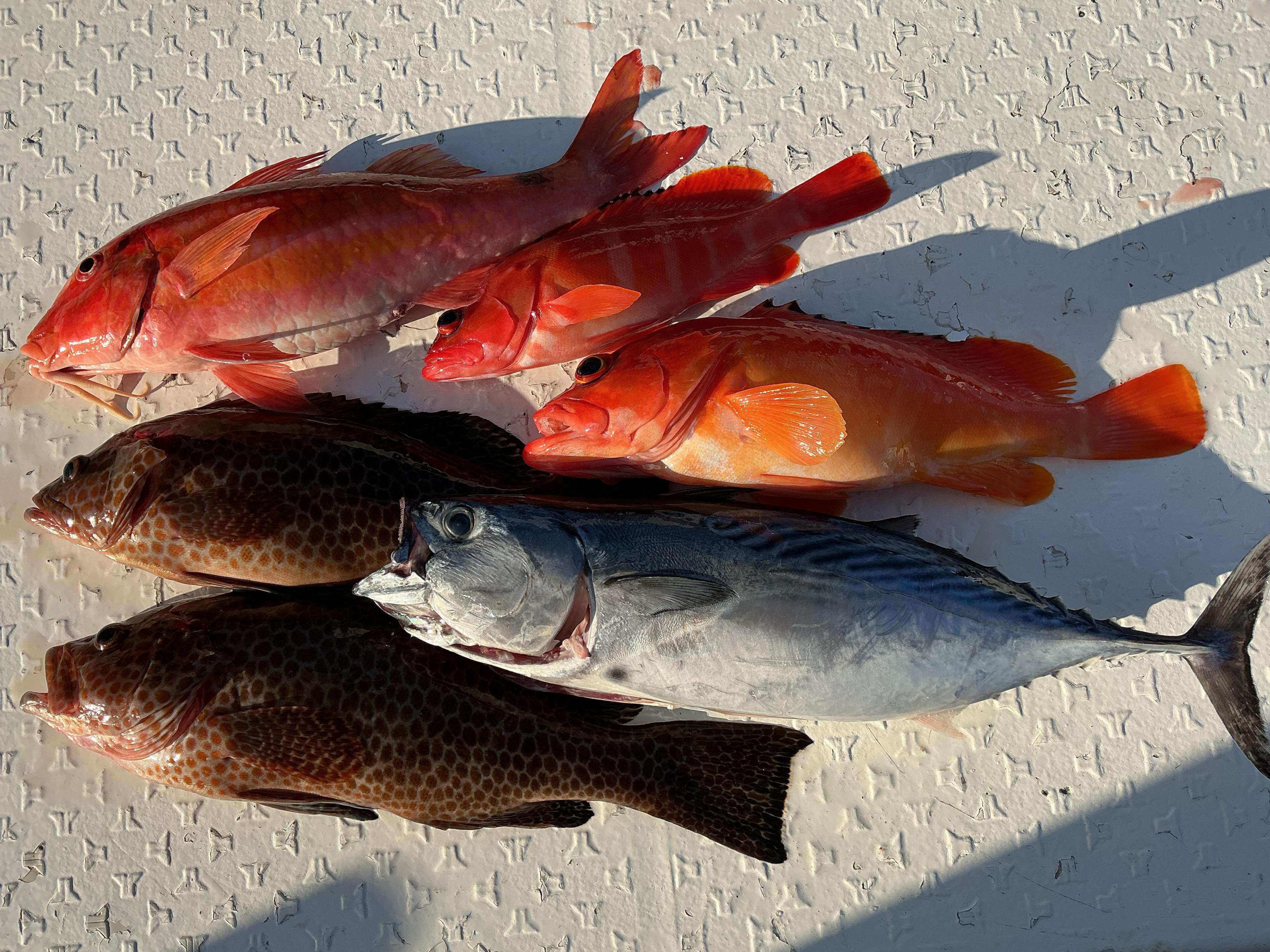昨日は昼前から風がおさまる予報だったので、それに合わせて、お一人様チャーター状態での出船でした。スタート時はまだ風波があり,近場からスタート。ここで早速オオモンハタを仕留めて,お土産確保。その後,沖に出ると,ジギングで美味しそうなヤイトがヒット。さらにアカハタやオオモンハタを追加して終了となりました。カンパチが欲しいところでしたが、残念ながらヒットせず。終了する頃には、上りのかなり速い潮が来ていたので,今後、青物が回ってくるかもしれません。 ![]() |